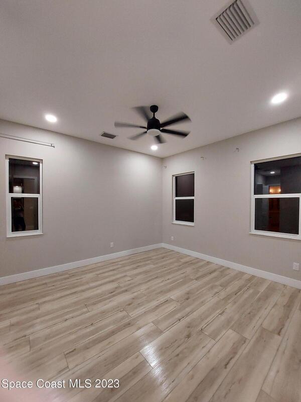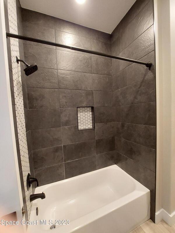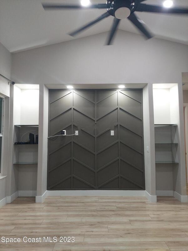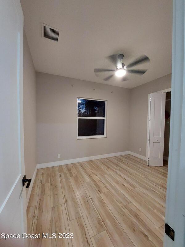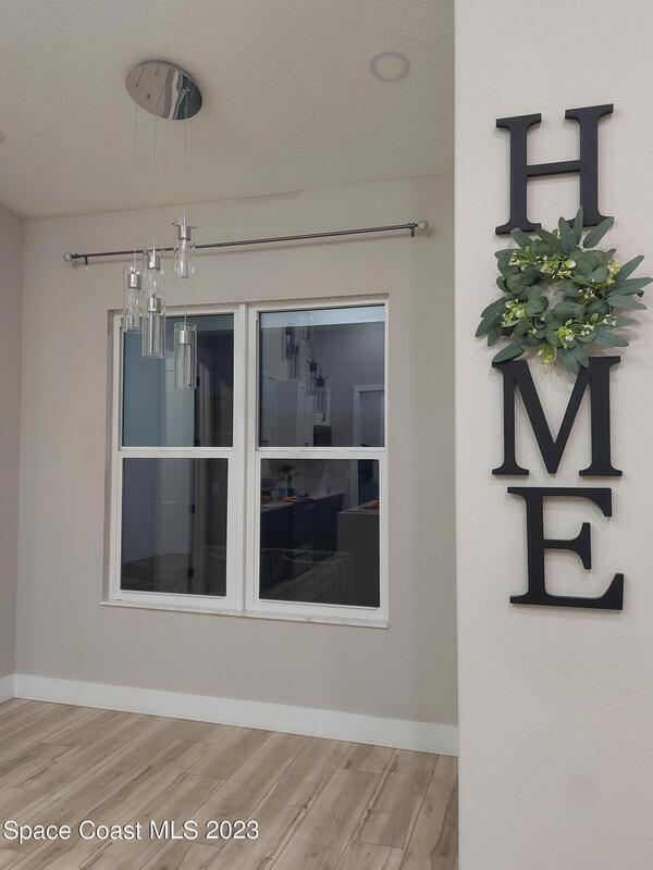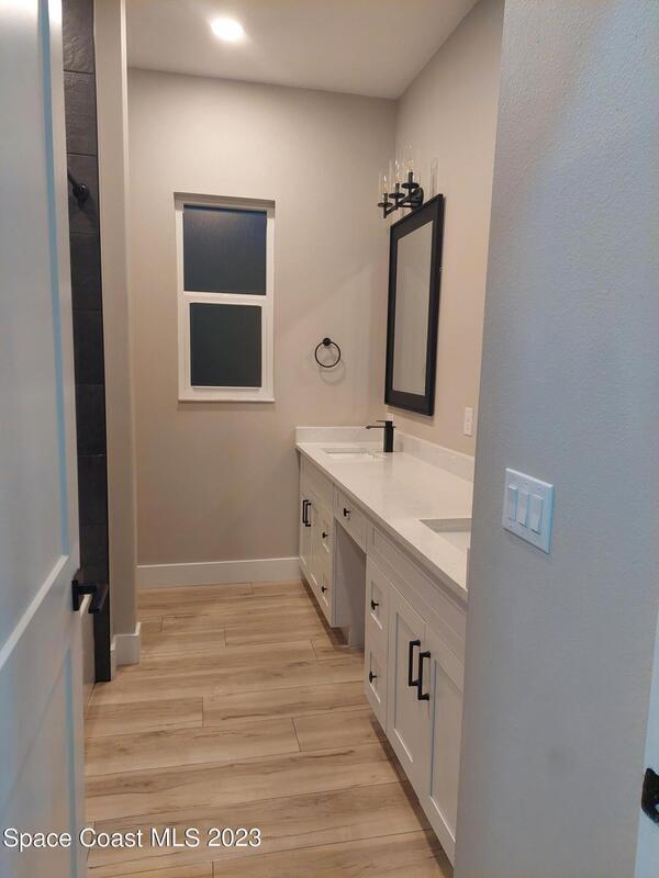 Available starting April 1, 2026. Living in Palm Bay is Awesome! This wonderful and modern house with 4 bedrooms, 2 bathrooms, and an internal garage for 2 cars, is waiting for you and your family, just one year old! Featuring a great room with vaulted ceilings and a designer accent wall with an open floor plan concept with its beautiful two-tone kitchen with a granite-topped waterfall island and large butler's pantry. The large master bedroom offers his and her closets in a split floor plan, with an en-suite bathroom that houses a modern floating tub and a walk-in shower, separate from the other 3 rooms offering added privacy. This gorgeous modern home offers plenty of storage for growing families and wonderful indoor/outdoor living with a large patio for entertaining and/or relaxing with a delicious family barbeque.