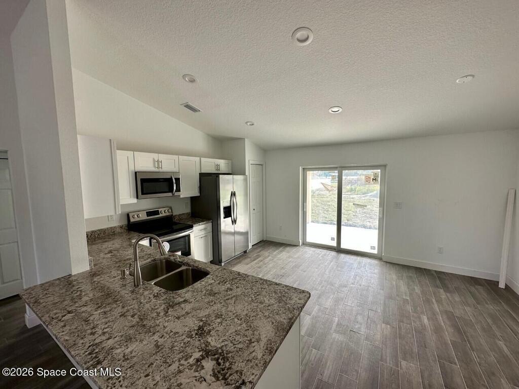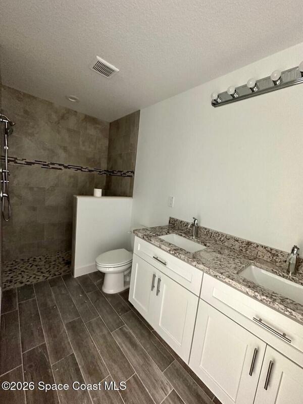 Look!!! Just finishing NEW city water home in SE Palm Bay on a corner lot and cul-de-sac . This 3-bed, 2-bath home spans 2332 square feet featuring real plank tile throughout the entire home as well as all impact windows and doors-no need for shutters, well insulated to improve low energy cost, also with the Lennox High efficiency air conditioning system that has been proven for low monthly bills. There is room for a swimming pool in the large back yard and extra parking for RV on the property, if desired. Kitchen and bathrooms with high level granite counter tops. Extras galore - can lighting in every room, closet, pantry, ceiling fans in each room, and exterior soffit lighting. The open concept is perfect for entertaining. The kitchen has oversized sinks with a breakfast bar. The primary suite with an en-suite bathroom, dual sinks, separate shower and Large walk-in closet, complete gutters, Latest ATU septic system includes 2 yr maint. So much more value than other homes! No HOA!
