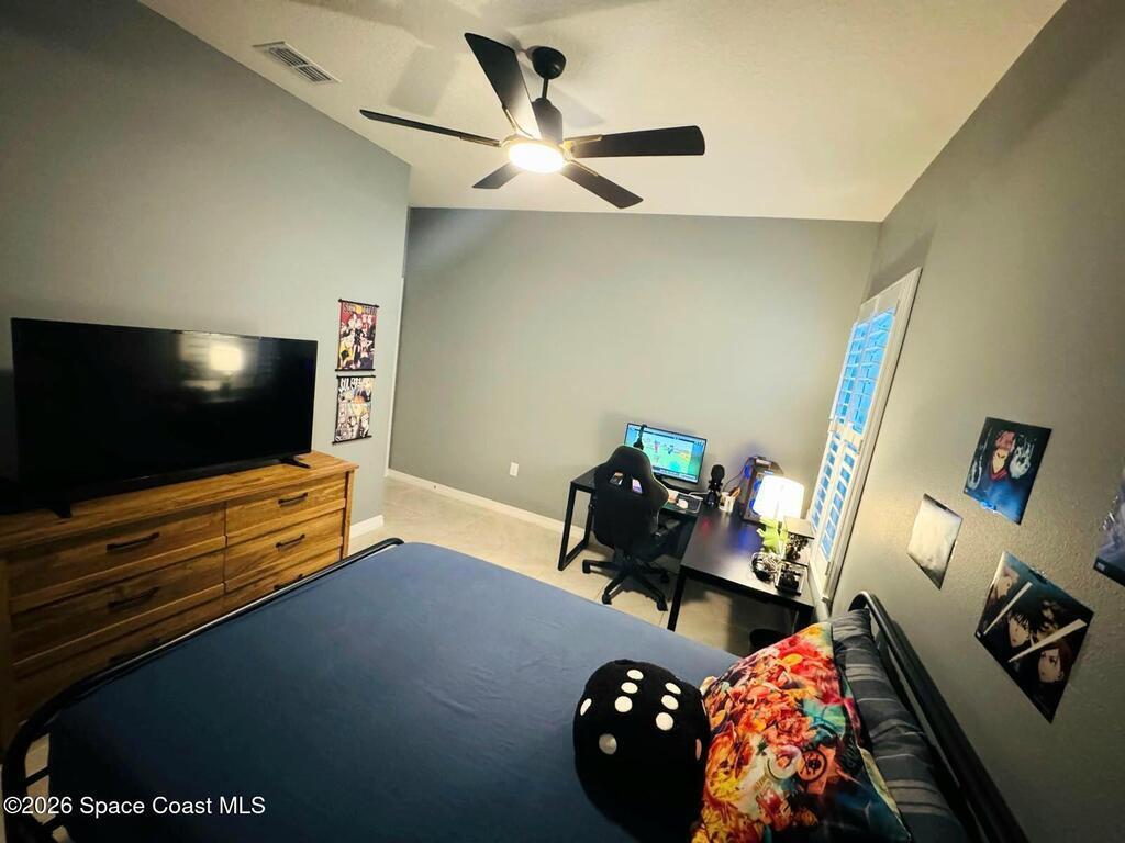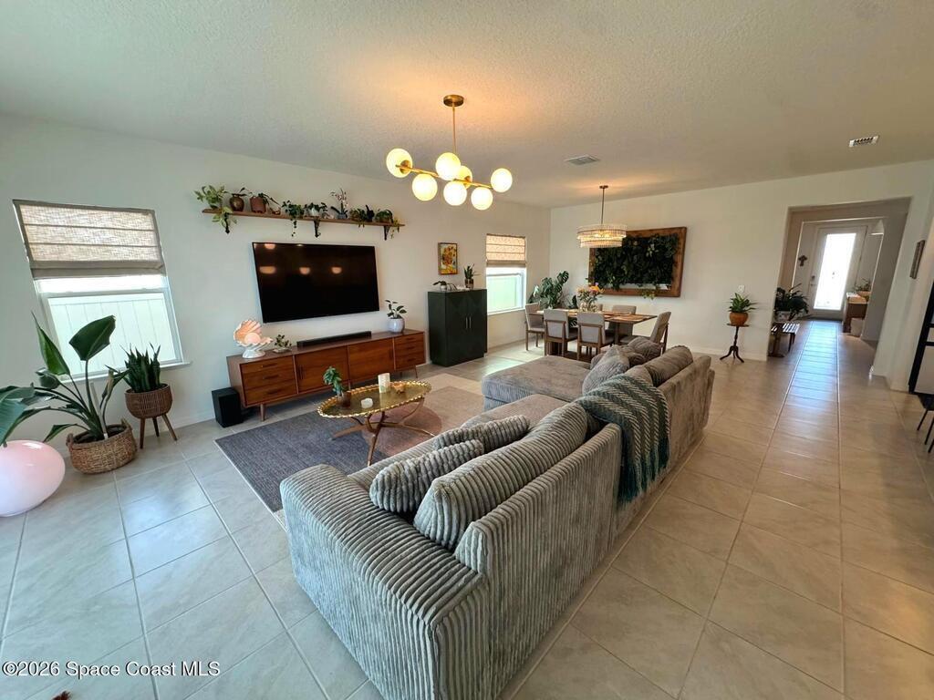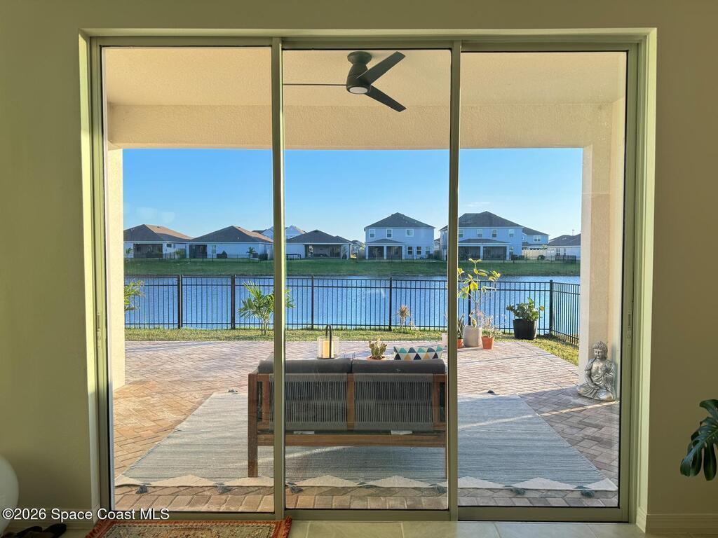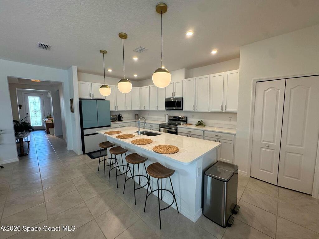 Welcome Home to this gorgeous 2023-built home where modern design meets thoughtful upgrades. From the moment you arrive, the beautiful glass front door set the tone for the elegance within. Prepare dinner in a gourmet kitchen with an island/breakfast bar that overlooks the great room perfect for entertaining. It shines with quartz counters, abundant cabinet space, a water system, stainless steel appliances and a top-of-the-line refrigerator making it a joy for the family chef. Elevated ceilings and tall windows fill the home with natural light, creating a welcoming vibe. Additional highlights include designer lighting throughout, shades and curtains in all the windows. One of the bedrooms is used as a home office and includes a Custom desk with shelving and a Murphy bed for guests. The fenced-in yard with pavers provides privacy & space for pets or play. This home blends luxury & functionality offering a rare opportunity to own a move-in-ready property w/all the extras in place.