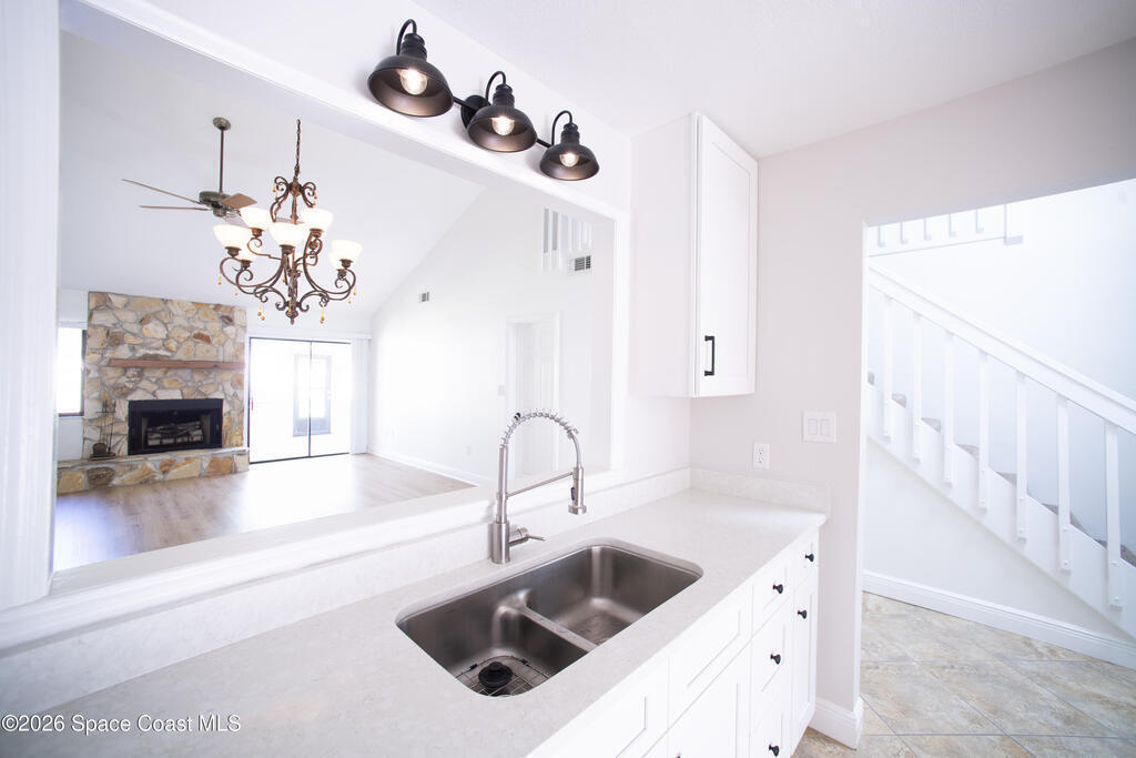 The search is over! Your new home awaits at 3607 Muirfield Drive located on the golf course (3rd hole) in the beautiful La Cita Golf & Country Club community. This home is a peaceful, spacious , two-story townhouse with 3 bedrooms and 2.5 baths. Remodeling includes a new roof (Oct 2025), fresh paint throughout, new water heater, electrical panel, kitchen cabinets, quartz countertops, living room flooring, and master bath vanity, tile flooring, and lighting. The kitchen pass-through connects with the dining/living room area making it perfect for entertaining. A natural stone, wood-burning fireplace and vaulted ceilings make for ideal hosting and cozy family evenings. Sunrises over the golf course provide for relaxing mornings in the sunroom. The large master bed/bath is located on the first floor, leaving the second floor bedrooms and bath for children or guests. View rocket launches and beautiful sunsets from the comfort of this Move-in-Ready hidden gem!