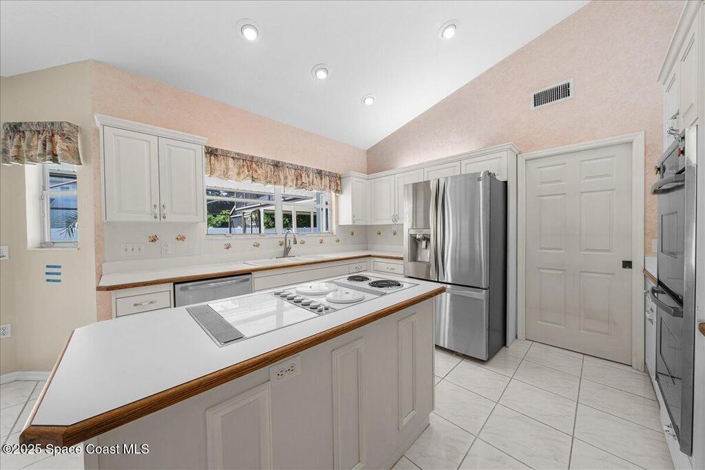 South Merritt Island Paradise in New Georgiana Settlement just waiting for you to put your stamp on it! Nestled on a spacious .34-acre lot in highly sought-after New Georgiana Settlement, this 3-bedroom, 2-bath, nearly 2, 400 sq ft pool home offers the perfect blend of privacy, elegance & Florida lifestyle living. The bright & open floor plan features soaring ceilings, abundant natural light & seamless indoor-outdoor flow. The chef's kitchen opens to the family room, making it ideal for entertaining, while the split-bedroom layout ensures comfort & privacy. Step outside to your private backyard oasis, complete with a sparkling pool & jacuzzi, lush landscaping & plenty of space for gatherings. Enjoy private access & dock on the Banana River--paddleboard, kayak or taking in breathtaking sunrises. Located minutes from beaches, top-rated schools, dining & shoppingΩ≈. Roof 2022, Hot Water Heater 7 ys old, HVAC 10 yrs old. Beautiful pavered driveway and side entry garage.