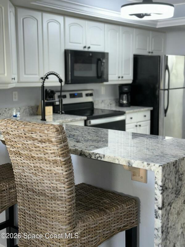 STONEWOOD STANDS ALONE WHEN IT COMES TO LUXURY COCOA BEACH PROPERTIES. AS YOU ENTER YOU WILL BE GREETED BY AN ACTUAL GUARD AT THE GATE. AMENITIES GALORE AT THIS RESORT STYLE COMMUNITY. THE HOME ITSELF OFFERS TASTEFUL UPGRADES AND THE BALCONIES OFF THE MASTER BEDROOM AND OPEN LIVING AREA OFFER OCEAN VIEWS AS WELL AS EXCEPTIONAL ROCKET VIEWS. LUXERY VINYL FLOORING THROUGHOUT LENDS TO THE BEACHY FEEL & MAKES FOR EASY CLEANING. VIBRANT DOWNTOWN IS A SHORT WALK OR BIKE RIDE. PRIVATE GARAGE TO KEEP YOUR CAR OUT OF TGE ELEMENTS IS DEFINITELY A PLUS. THIS HOME WOULD SUIT A FAMILY OR AN EXECUTIVE. IF TENNIS, PICKLEBALL, SWIMMING IN A HEATED POOL, SURFING, SPA, GYM OR RELAXING ON THE WHITE SANDY SHORELINE IS YOUR VIBE, THEN THIS PLACE IS FOR YOU!