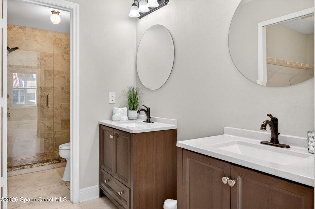 Beautifully maintained ONE-Story villa in the heart of Suntree! This light and bright 2-bedroom, 2-bath home with a 1-car garage is truly Move-In Ready! Featuring gorgeous tile flooring throughout, IMPACT WINDOWS and a spacious open living area offering both comfort and style. Enjoy an updated primary suite with double vanities, walk in shower and large walk in closet. Abundant natural light in every room. A/C 2020. Water Heater 2025. Step outside to your private screened-in courtyard -- perfect for relaxing or entertaining. Tucked away on a quiet cul-de-sac street with a short walk to the amenities area, this home offers peaceful living. Community pool, tennis courts & more. Close to golf, walking paths, shopping, Patrick Space Force Base and all major roadways. Just a short drive to the BEACH. SEE IT TODAY!