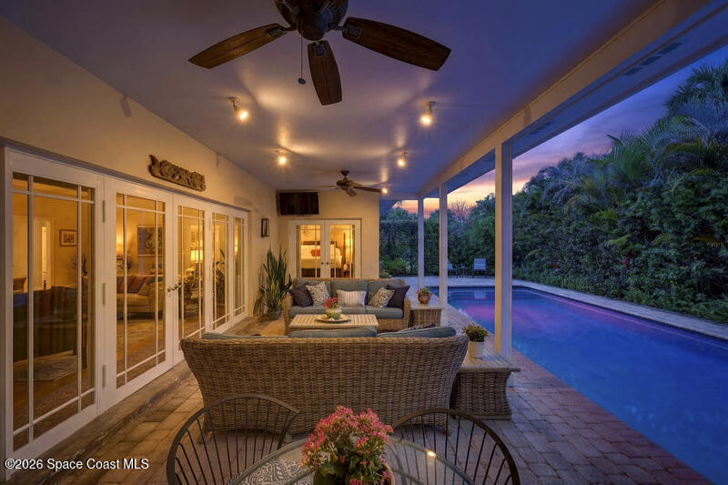 Beautiful Oak canopied corner .54 acre lot in well established town of Indian River Shores neighborhood. 3BR/4BA pool home - close pocket doors to create private 1BR/1BA + den in-law/guest wing with separate entrance, full kitchen & pool views or leave doors open for Grand sprawling estate. Ideal for home office. CBK construction w/impact glass window & doors. Whole house generator. Fenced yard with lush landscaping. Beach access within close proximity. Low annual HOA fee. Sizes are approximate and subject to change.