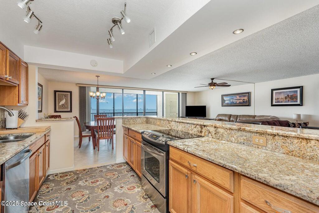 Indian River Waterfront Condo -ONLY $420, 000! Watch stunning views from this gated, fully furnished 3BR/ 2BA turnkey condo! Enjoy front row seats to rocket launches, dolphins, manatees, and stunning sunrises right from your balcony! The open floor plan features a spacious living area and dining area overlooking the river and community pool. Updated kitchen includes granite countertops, stainless steel appliances, and a cozy nook perfect for a small office or breakfast space. Just off the kitchen is a large laundry room with a washer and dryer and abundant cabinets for storage. The large primary suite offers a private balcony to enjoy your morning coffee or a rocket launch! Updates include a newer washer/ dryer, newer water heater, newer circuit panel breaker and newer garbage disposal. Tile throughout except for the bedrooms. Hurricane shutters also included. Sold completely furnished-just bring your suitcase. Minutes to beaches, shopping, parks and historic downtown Titusville.