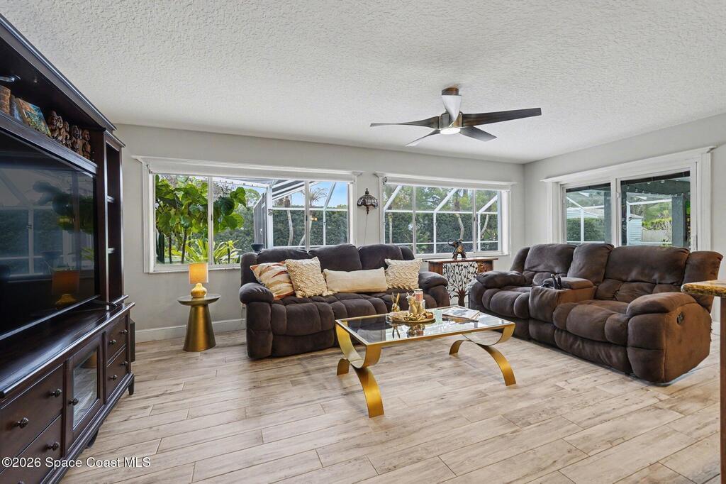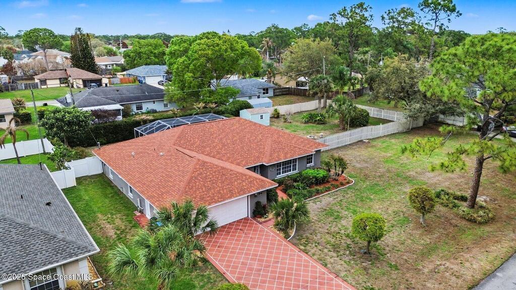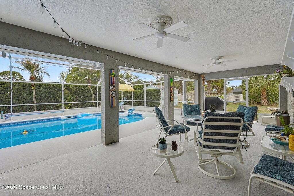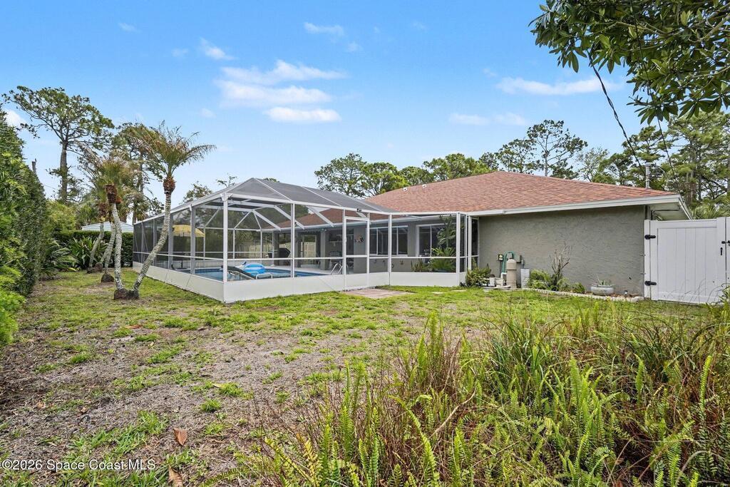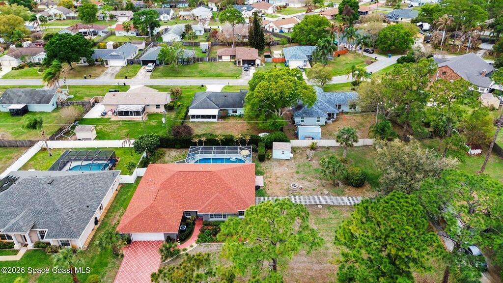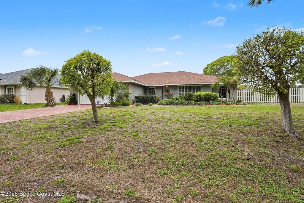 Welcome to this spacious and versatile pool home in the heart of Palm Bay, offering the perfect blend of indoor comfort and outdoor living. Situated on an oversized nearly half-acre lot, this property provides both privacy and room to spread out--an increasingly rare find. Step inside to discover over 2, 100 square feet of living space, featuring a flexible layout designed for both everyday living and entertaining. Multiple living areas--including a formal living room, dining space, and bonus/flex room--offer endless possibilities for a home office, media room, or additional gathering space. The kitchen serves as the heart of the home with ample cabinetry, a convenient breakfast bar, and an eat-in dining area that flows seamlessly into the main living spaces. Tile and laminate flooring throughout add durability and easy maintenance, while natural light enhances the home's warm and inviting feel.The split-bedroom floor plan provides privacy, with a generously sized primary suite