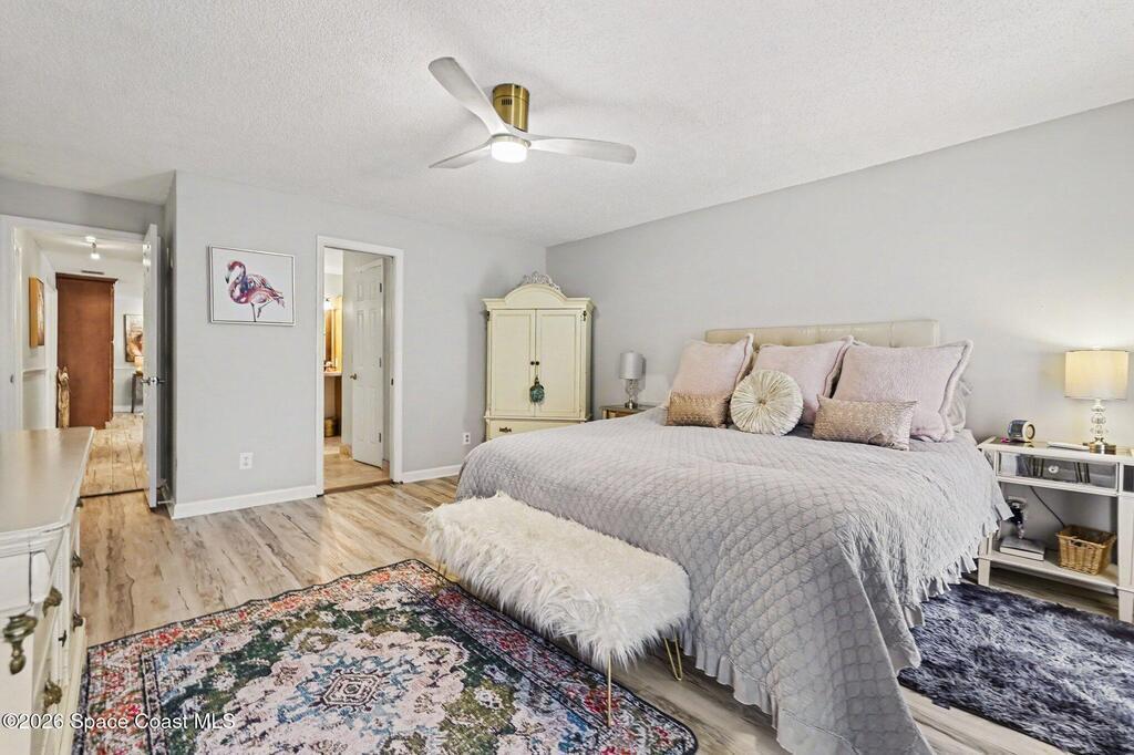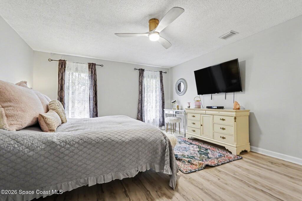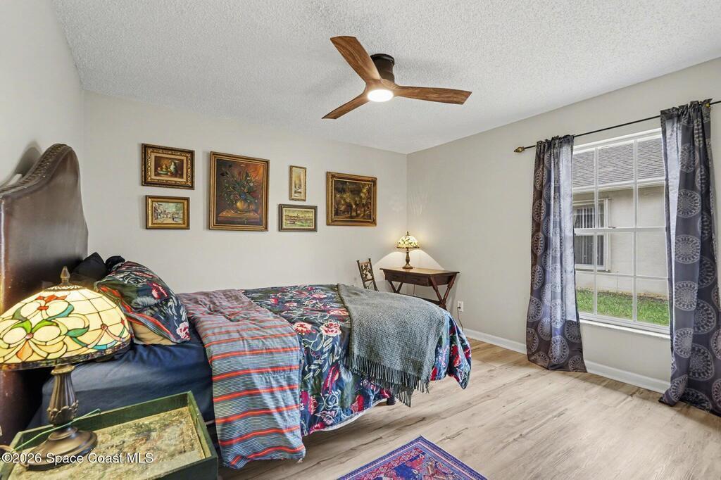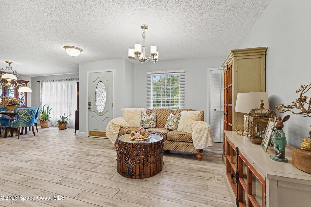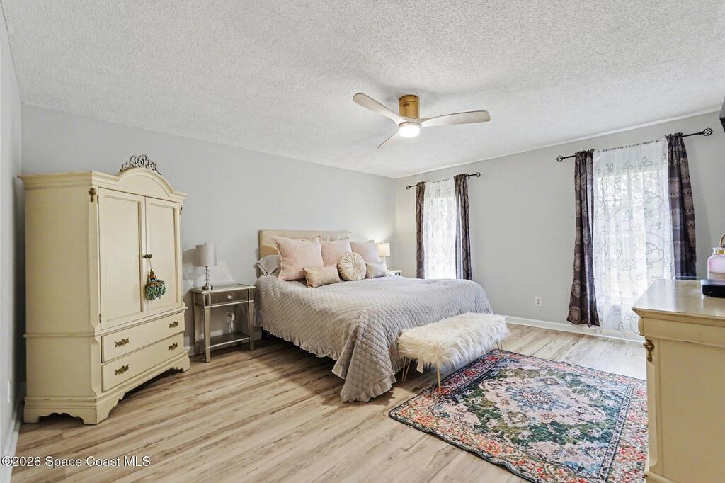 Welcome to this spacious and versatile pool home in the heart of Palm Bay, offering the perfect blend of indoor comfort and outdoor living. Situated on an oversized nearly half-acre lot, this property provides both privacy and room to spread out--an increasingly rare find. Step inside to discover over 2, 100 square feet of living space, featuring a flexible layout designed for both everyday living and entertaining. Multiple living areas--including a formal living room, dining space, and bonus/flex room--offer endless possibilities for a home office, media room, or additional gathering space. The kitchen serves as the heart of the home with ample cabinetry, a convenient breakfast bar, and an eat-in dining area that flows seamlessly into the main living spaces. Tile and laminate flooring throughout add durability and easy maintenance, while natural light enhances the home's warm and inviting feel.The split-bedroom floor plan provides privacy, with a generously sized primary suite