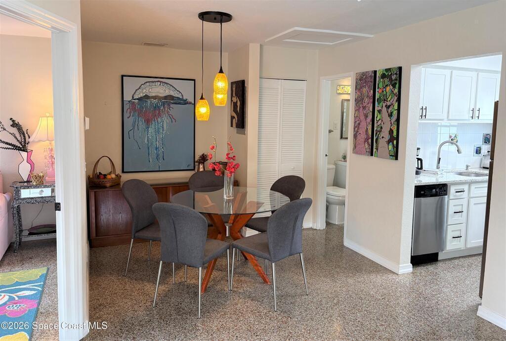Living EASY, Melbourne Beach style! Water, sewer, trash, wifi, and furnishings included ($50 credit each month of electric too). Across the street from the shimmering Atlantic, this 2 bedroom, 1 bath condo is an oldie but a goodie in the heart of Melbourne Beach that has the charm of a bygone era with the breezy, timeless feel only a true coastal classic can offer. Bask in Florida's endless sunshine, whether relaxing in the charming front courtyard or unwinding on the peaceful rear porch, with year-round breezes. Would love to show you so you can live with an ocean view! This condo is in the most quaint town around, close to all your needs with the heart of town, Ocean Avenue, only 3 blocks away for fantastic restaurants, gas, mechanics, fast food, The Super Market, pet groomers, library, public park, tennis courts, there is something for everyone. It is an enjoyable lifestyle to try out! Call for your tour.