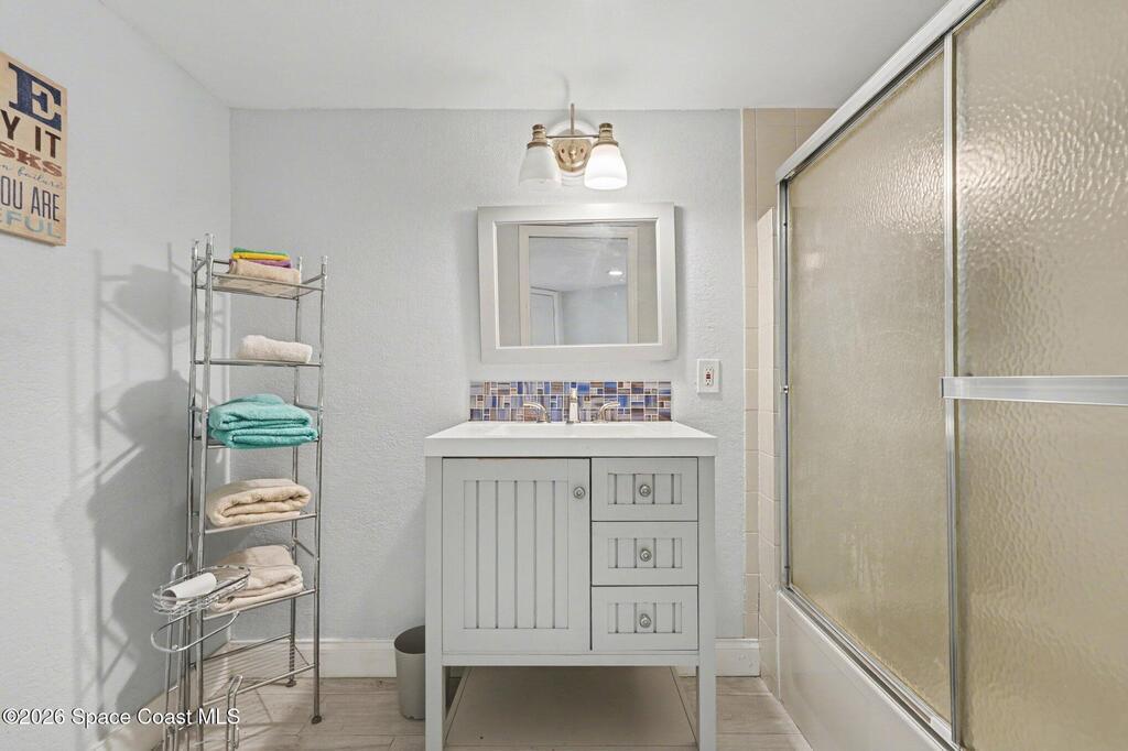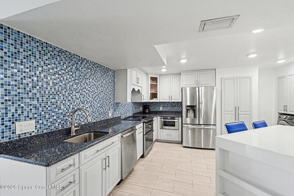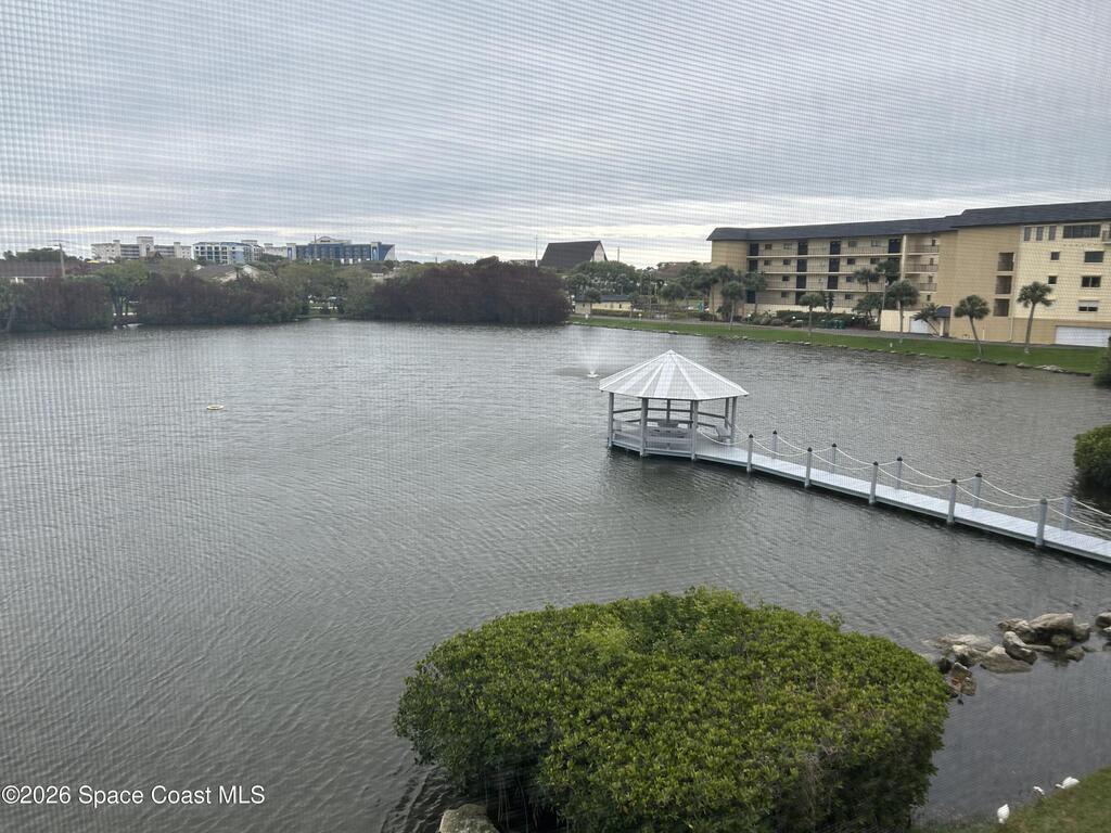 Enjoy the best of Florida living in this beautifully updated 2-bedroom, 2-bath third-floor condo with peaceful pond views and a bright open floor plan. The living and dining areas flow seamlessly to a large private balcony, perfect for morning coffee or relaxing while overlooking tranquil water. The updated kitchen features stainless steel appliances, ample cabinetry, and a custom tile backsplash, opening to the main living space for easy entertaining. The primary suite offers a private bath, while the second bedroom and full bath provide space for guests or a home office. Additional highlights include a 1-car garage under the building and the privacy of third-floor living. Rock Pointe is a riverfront community with resort-style amenities including a clubhouse, pool, spa, sauna, fitness center, and tennis courts, just minutes from beaches, boating, dining, and shopping--ideal as a primary home, vacation retreat, or investment property on Florida's Space Coast.