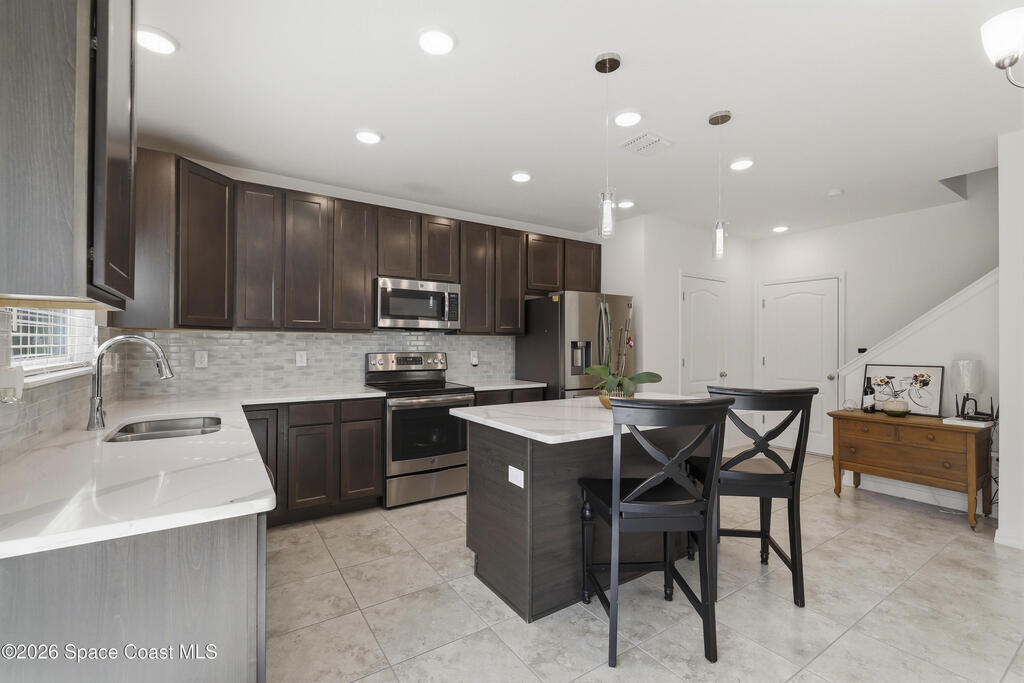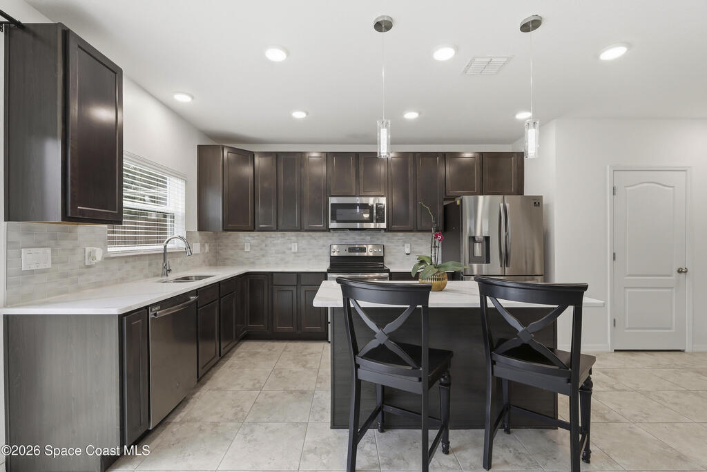 Built in 2019, this beautifully maintained 3 bedroom, 2.5 bath home offers stylish modern living with peaceful pond views and a spacious two-story layout. The first floor features an open-concept design with wide plank flooring, abundant natural light, a large living area, and a stunning kitchen complete with dark wood cabinetry, quartz countertops, stainless steel appliances, tile backsplash, center island, and generous dining space. Upstairs, the oversized primary suite offers a relaxing retreat with tray ceiling detail, dual sinks, a walk-in closet, and a large walk-in shower. Two additional bedrooms, a versatile loft/sitting area, and an upstairs laundry room provide flexibility and convenience. Step outside to enjoy the fenced backyard overlooking a tranquil pond and natural setting, creating the perfect backdrop for entertaining or unwinding. With a 2-car garage, attractive curb appeal, and a location in a newer community close to everything!