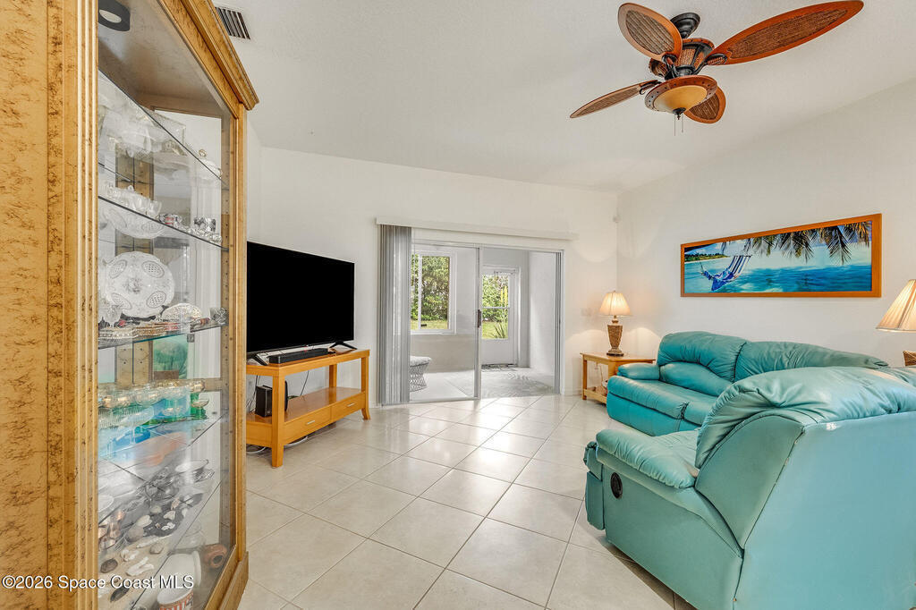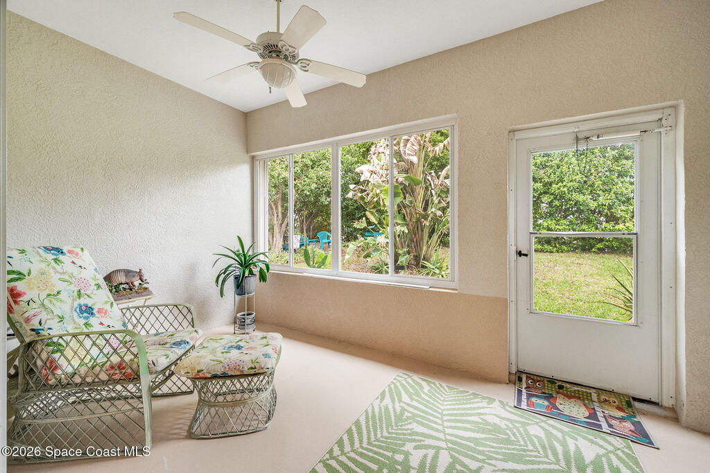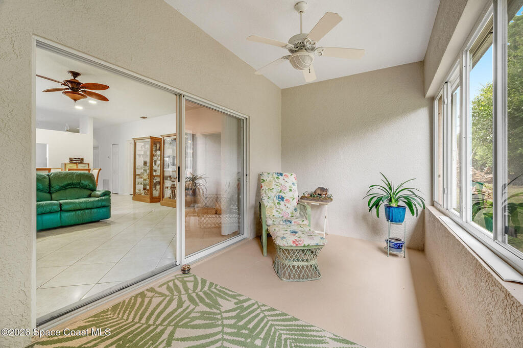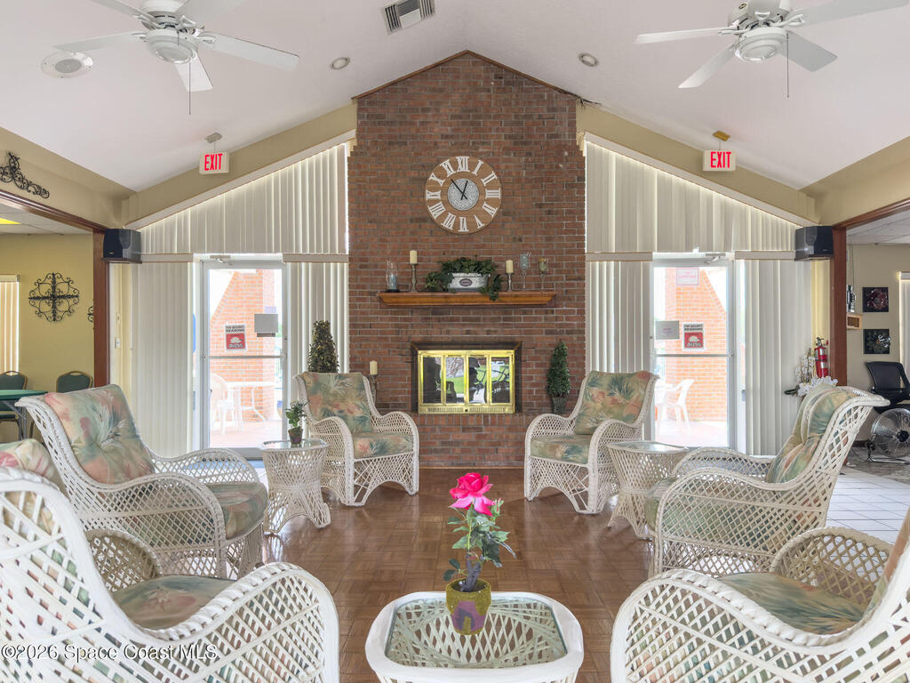 Enjoy the perfect blend of security, styled concrete, brick 3/2/2 gated community (South Oaks) meticulous maintained home designed for an easy care lifestyle. This home has soaring high ceilings that create an expansive, light filled atmosphere throughout the main living areas. Durable, stylish tile flooring through all high traffic areas for easy maintenance, carpets in bedroom for ultimate comfort. Step out to your enclosed Florida room and you will hear the birds chirping and signing while having coffee. This home has hurricane shutters to secure and provides significant insurance savings. Community amenities: clubhouse, pool, hot tub/jacuzzi, sauna, gym, pool table, library, pickleball, tennis courts, storage parking for your boat/RV. Minutes to beaches, fishing, Sebastian inlet, Fellsmere, boating, golfing, shops, restaurant's, historic downtown Melbourne, Melbourne International airport. Great for year round or snowbird living.