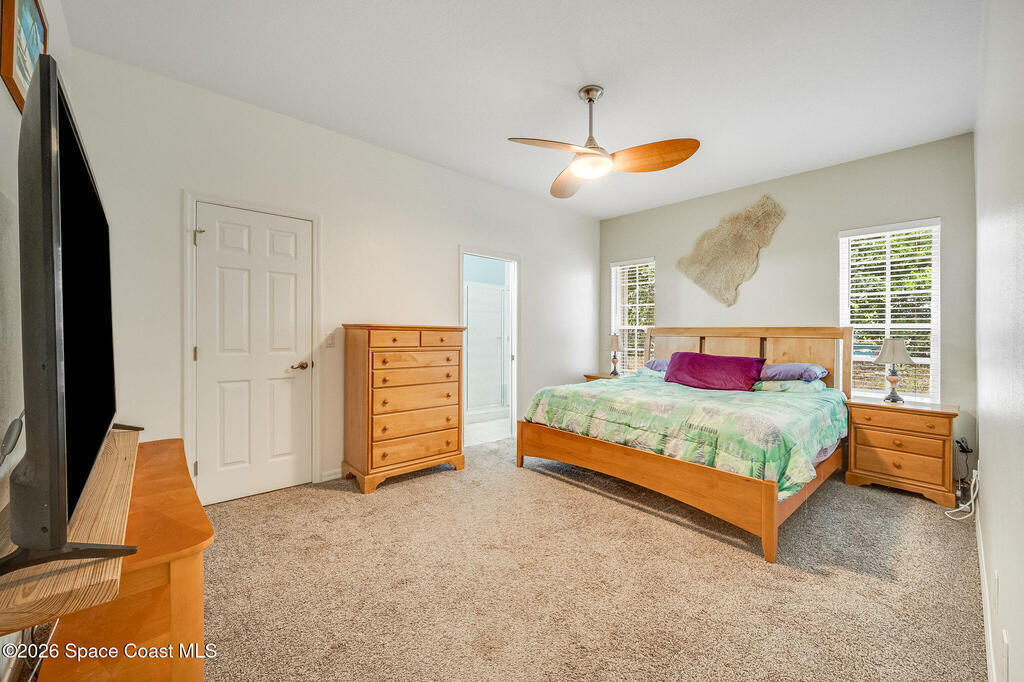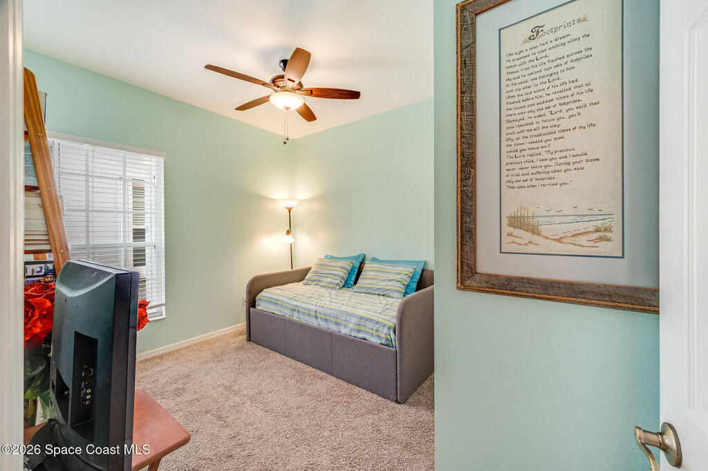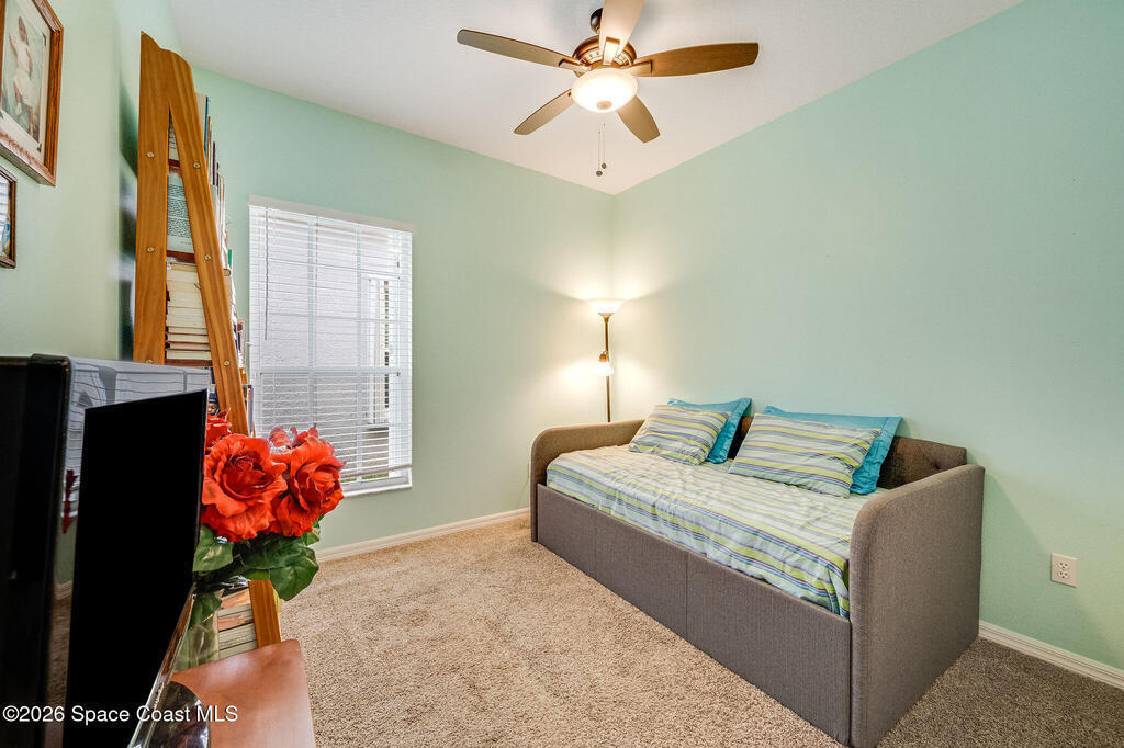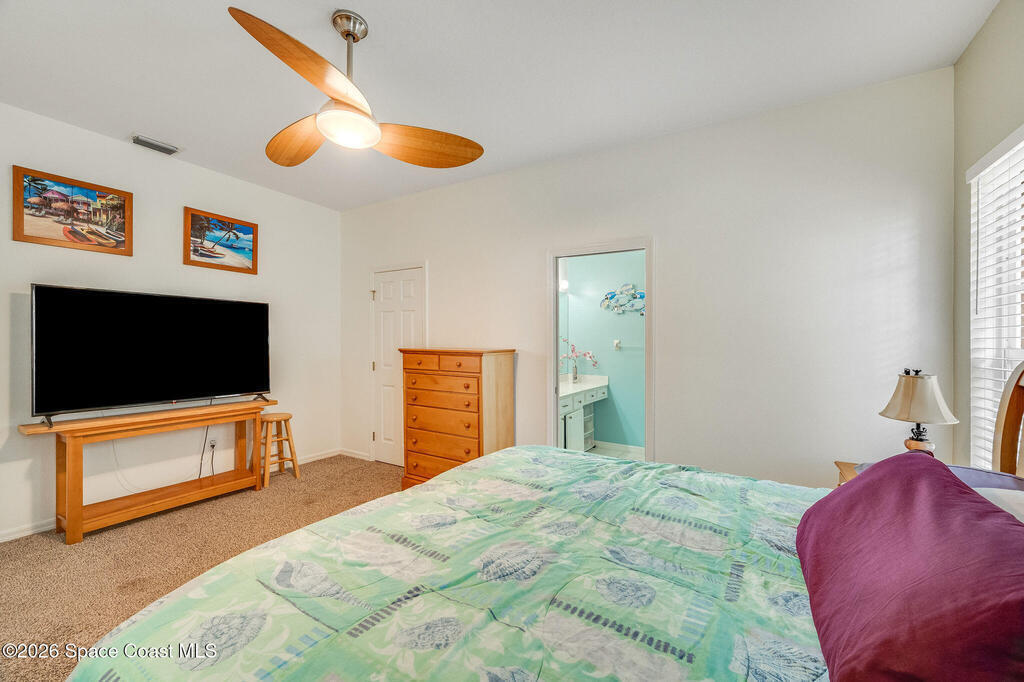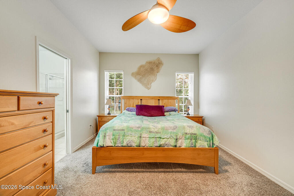 Enjoy the perfect blend of security, styled concrete, brick 3/2/2 gated community (South Oaks) meticulous maintained home designed for an easy care lifestyle. This home has soaring high ceilings that create an expansive, light filled atmosphere throughout the main living areas. Durable, stylish tile flooring through all high traffic areas for easy maintenance, carpets in bedroom for ultimate comfort. Step out to your enclosed Florida room and you will hear the birds chirping and signing while having coffee. This home has hurricane shutters to secure and provides significant insurance savings. Community amenities: clubhouse, pool, hot tub/jacuzzi, sauna, gym, pool table, library, pickleball, tennis courts, storage parking for your boat/RV. Minutes to beaches, fishing, Sebastian inlet, Fellsmere, boating, golfing, shops, restaurant's, historic downtown Melbourne, Melbourne International airport. Great for year round or snowbird living.