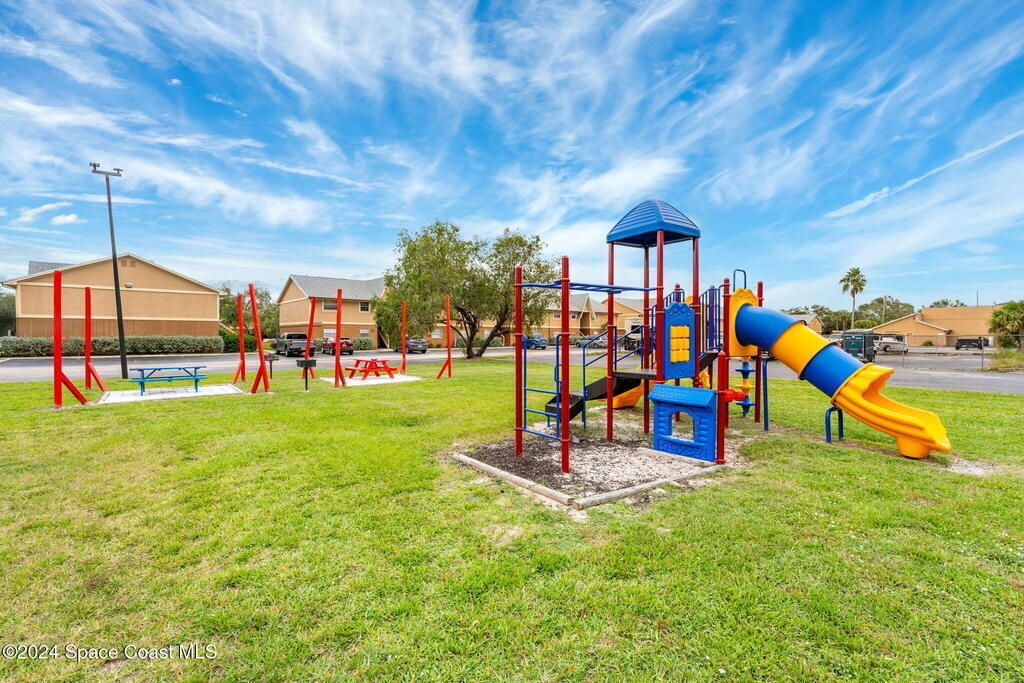 This recently updated and renovated 1 bedroom 1 bath 1st floor condo comes with a view of the COMMUNITY POOL from your spacious back patio. The updated kitchen includes granite countertops and stainless steel appliances. Community amenities include: Pool, Pickleball, tennis, and basketball courts, RV/Boat storage, Laundry, clubhouse, Park, and Playground. Across the street from a beautiful golf course, this property is a short distance to the beaches, Port Canaveral, Cocoa Beach, Sebastian Inlet, Disney World, Viera, Vero Beach, upscale shopping, the airports, the Brevard Zoo, the space center, and other world class attractions.
