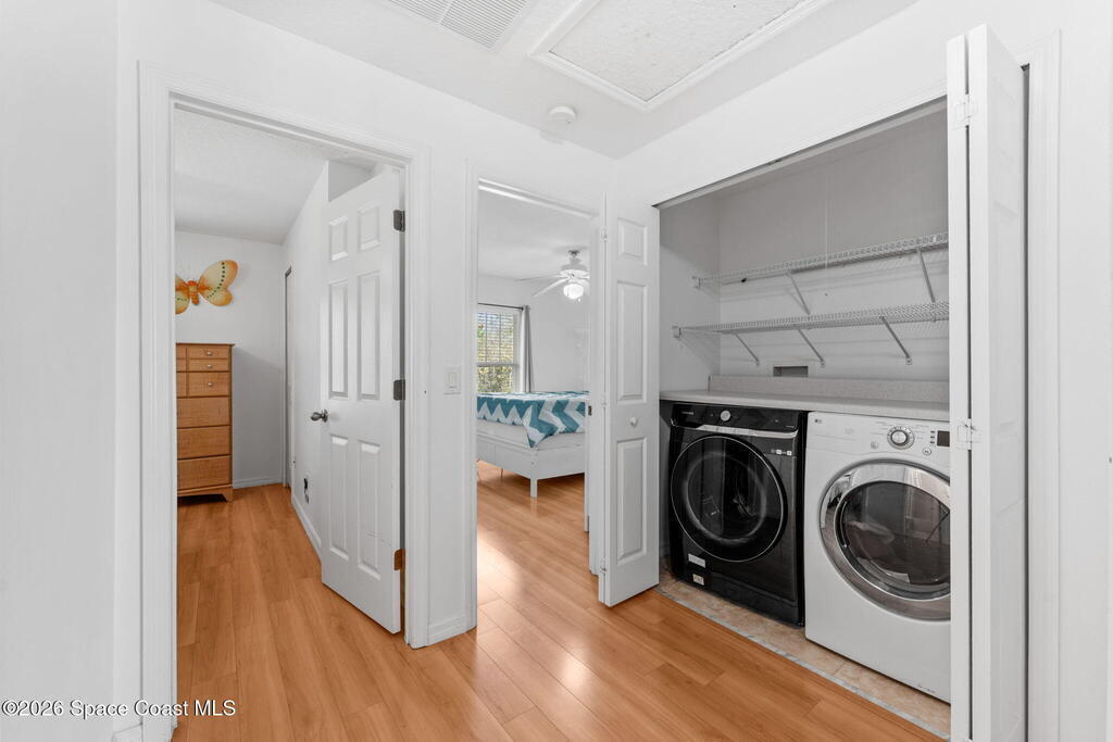 Beautiful 3-bedroom, 2.5-bathroom townhouse in a fantastic location. The open and spacious floor plan features an attractive kitchen overlooking the living and dining areas-an ideal setting for relaxing at home or entertaining guests. The kitchen offers stainless steel appliances, abundant solid-surface countertop space, rich wood cabinetry, and a convenient closet pantry, combining both style and functionality. The Primary Suite provides a comfortable private retreat with plenty of space for a full bedroom set and a cozy seating area. The ensuite bathroom features a double-sink vanity, water closet, linen closet, and walk-in shower. Additional upstairs bedrooms are generously sized and perfect for family, guests, or a home office all with luxurious hardwood. The second floor also includes the convenience of an upstairs laundry area. A screened-in front porch welcomes you home and offers a pleasant spot to relax outdoors. Ideally located near a wide variety of shopping & dining.