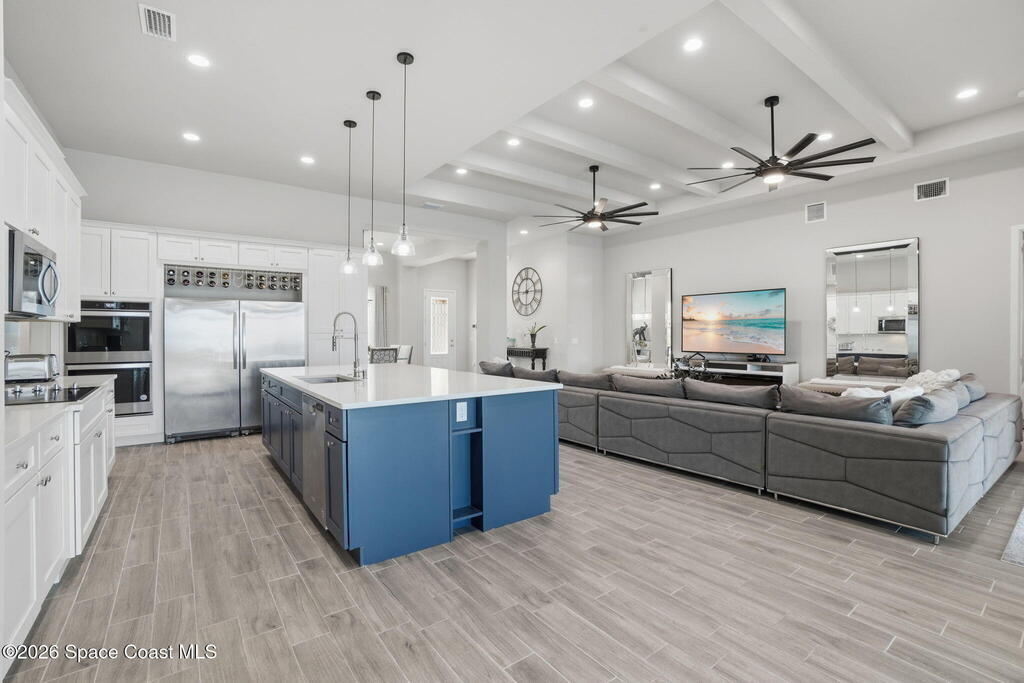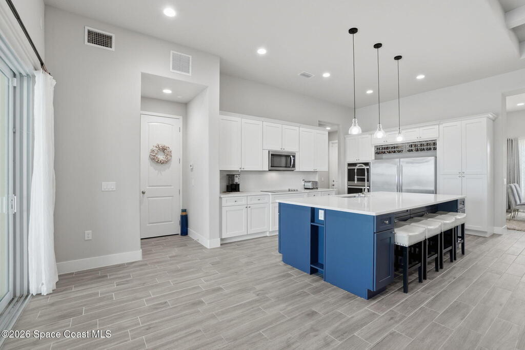 Experience luxury living in this custom 2021 Damar-built 4-bed, 3-bath pool home with a 4-car epoxied garage, located in the gated community of Enclave at Lake Washington. Designed for both comfort and entertaining, the home features an open-concept layout that allows the main living spaces to flow seamlessly together. The kitchen is built for hosting and everyday living alike, offering a large center island, double ovens, abundant cabinetry, and a custom wine rack above the refrigerator. The primary suite provides a private retreat with a spa-style bathroom and a spacious walk-in closet. Step outside to experience true Florida living with a gas-heated pool and spa equipped with a Pentair smart pool system, allowing the pool temperature and settings to be controlled directly from your phone. The outdoor living space continues with a large screened patio with water views and a fully enclosed outdoor kitchen complete with its own exhaust system, private entrance, and air