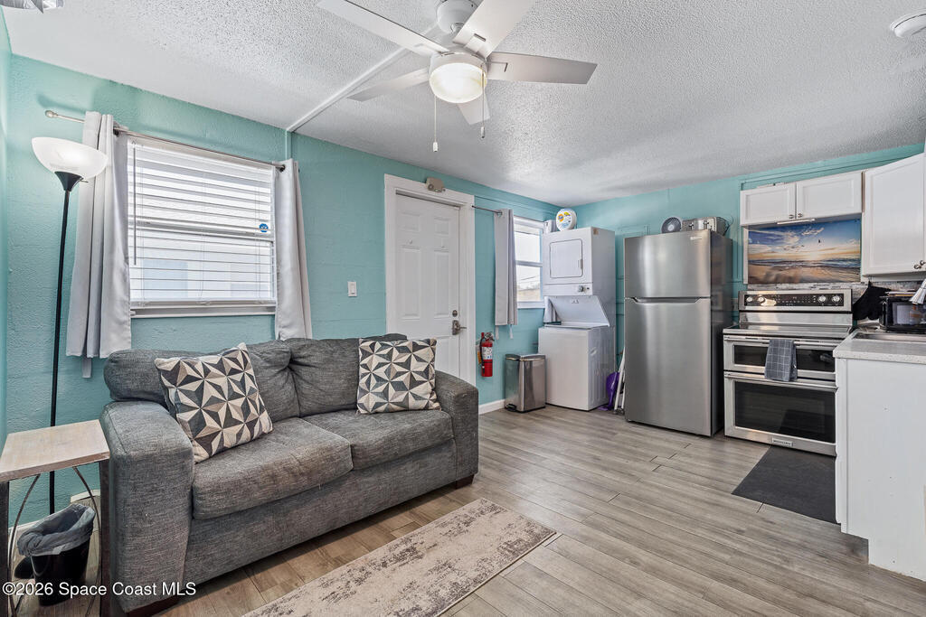 Location, location, location! Calling all CASH BUYERS. Make your beach dreams a reality with this fantastic 1 bedroom, 1 bath condo. The condo is just a short walk (1.5 blocks) to the beach. This turnkey condo unit makes a great Airbnb style investment, snowbird oceanfront oasis, or even your full-time residence. The complex offers investor-friendly policies that allow weekly rentals. The fully furnished unit boast an open floor plan, updated kitchen with stainless steel appliances, and an updated bath. Buyers here will enjoy peace of mind with 2 newer mini split A/C systems (2 years old), in unit stackable washer and dryer, good rental history, great reviews on Airbnb and VRBO, all furniture 1-2 years old, all licenses are up to date, the building was painted this year, and balcony project was completed last year. You'll love the fabulous Florida lifestyle this complex offers, step outside to enjoy the rocket launches and the beach. And a great location near The Cove, the Cocoa Beach