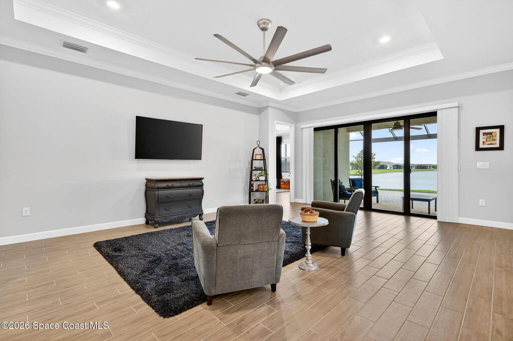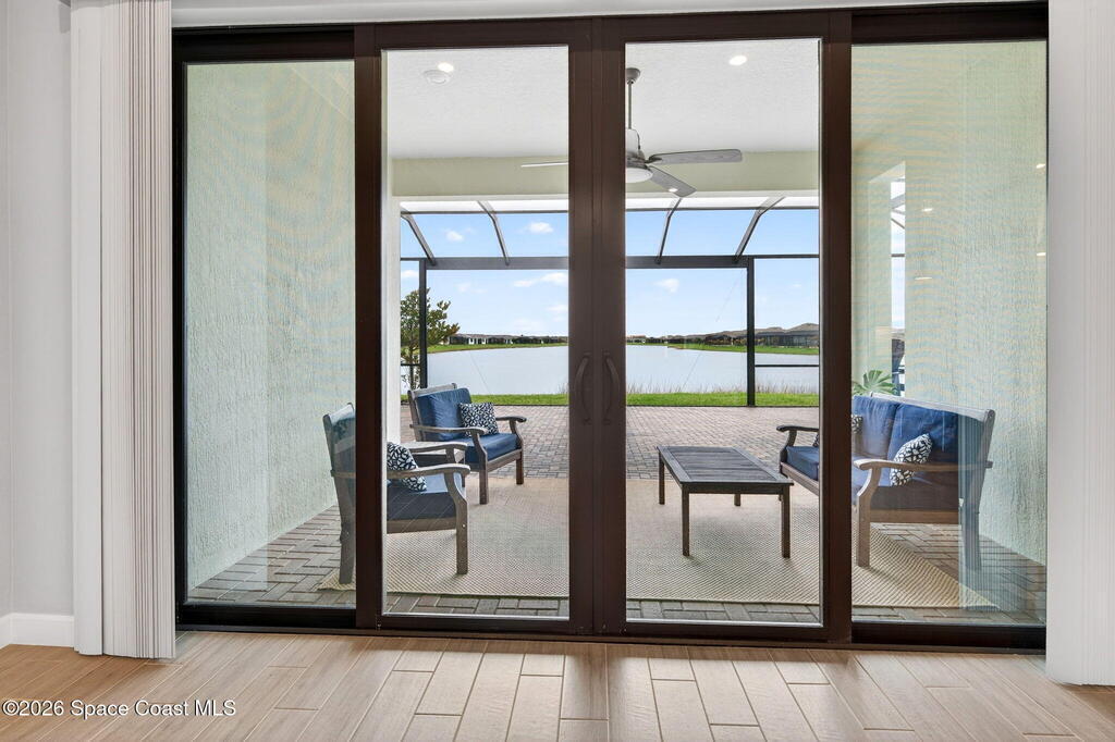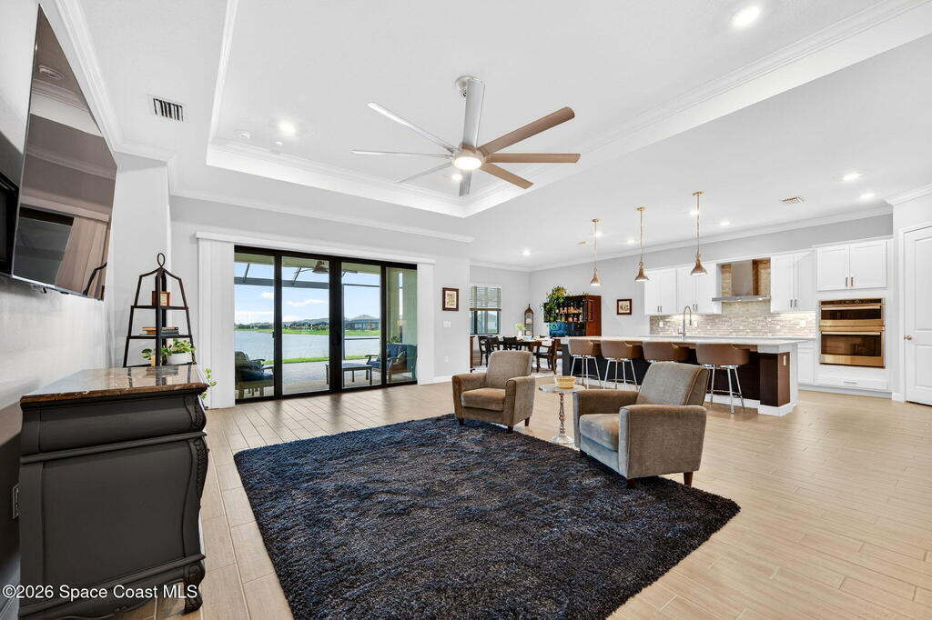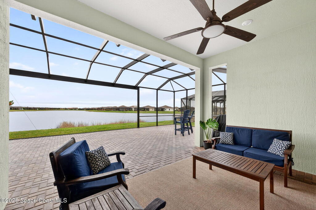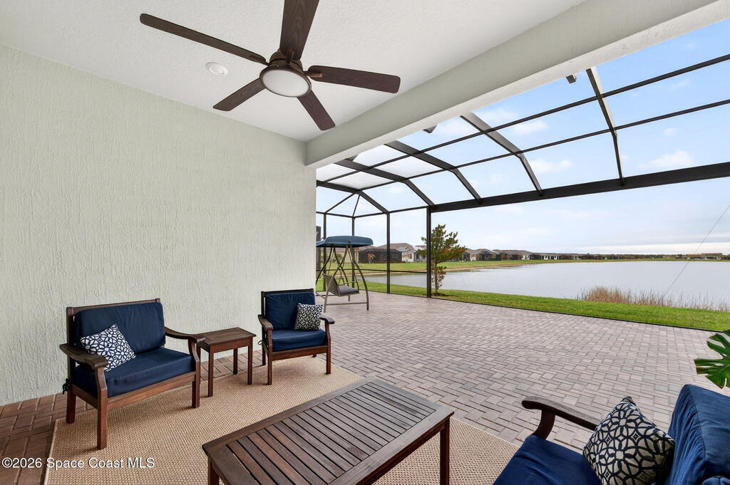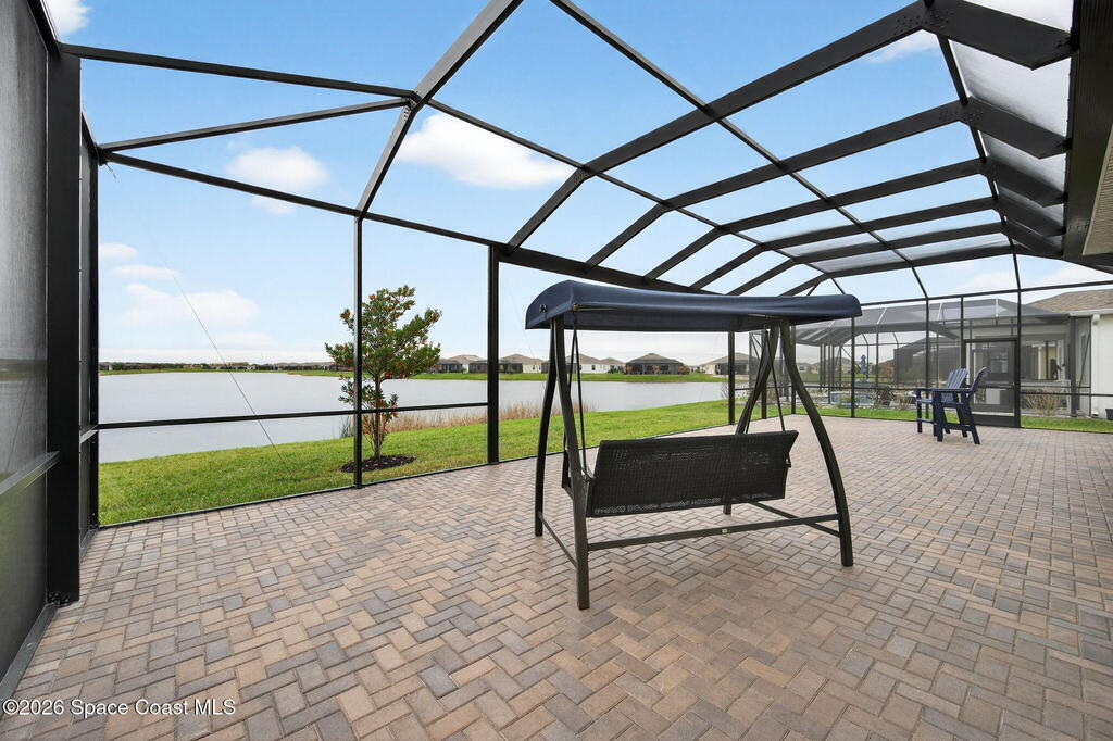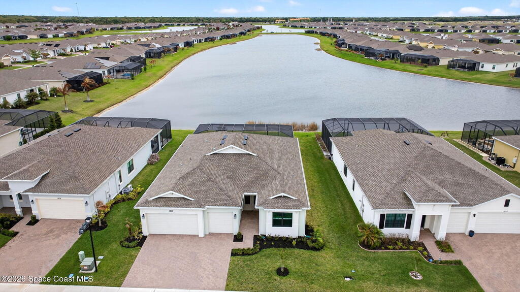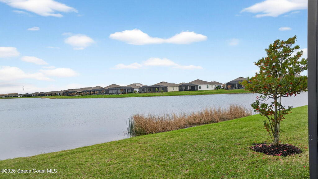 GREAT LAKE VIEW... This 3BR, PLUS FLEX RM (Could be a 4th BR, Guest room, or Office), 3 Full Bath, 3 Car Garage Home with LONG VIEW of the LAKE!!! New in 2022, and Still Looks That Nice, and Better Due to Highly Desired Updates and Upgrades Like the Stylish Full Length Extended Paver Lanai with A DESIRED PICTURE FRAME Rear Enclosure, Tile Plank Flooring Used Throughout Home, Centralized Living RM Area open to Kitchen, Primary Suite and bath with Walk-in Closets w/Professional Grade Organizers, Upgraded Illuminated Mirrors (Heat and Lighting Integrated), Gourmet Kit with Wall Oven, Flat Surface Cook Top, Statement Hood (vented outside), Quartz Counter Tops, Pendant Lighting, Impact Windows. Home has Great LAKE Views from Kitchen, Living Rm, Dining Area, Primary Suite, and Covered Porch!!! Truly a Discriminating Home to Consider!!! All Located with a Upscale Active and Gated 55+ Community Near Costco in Viera!!!