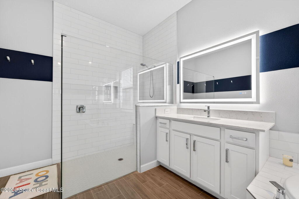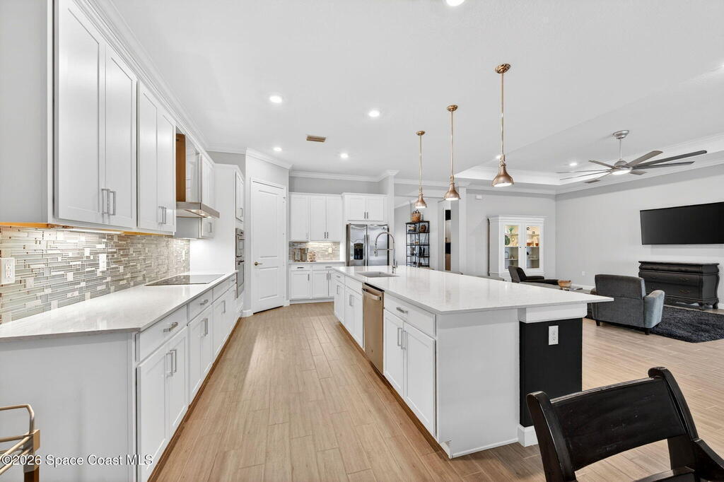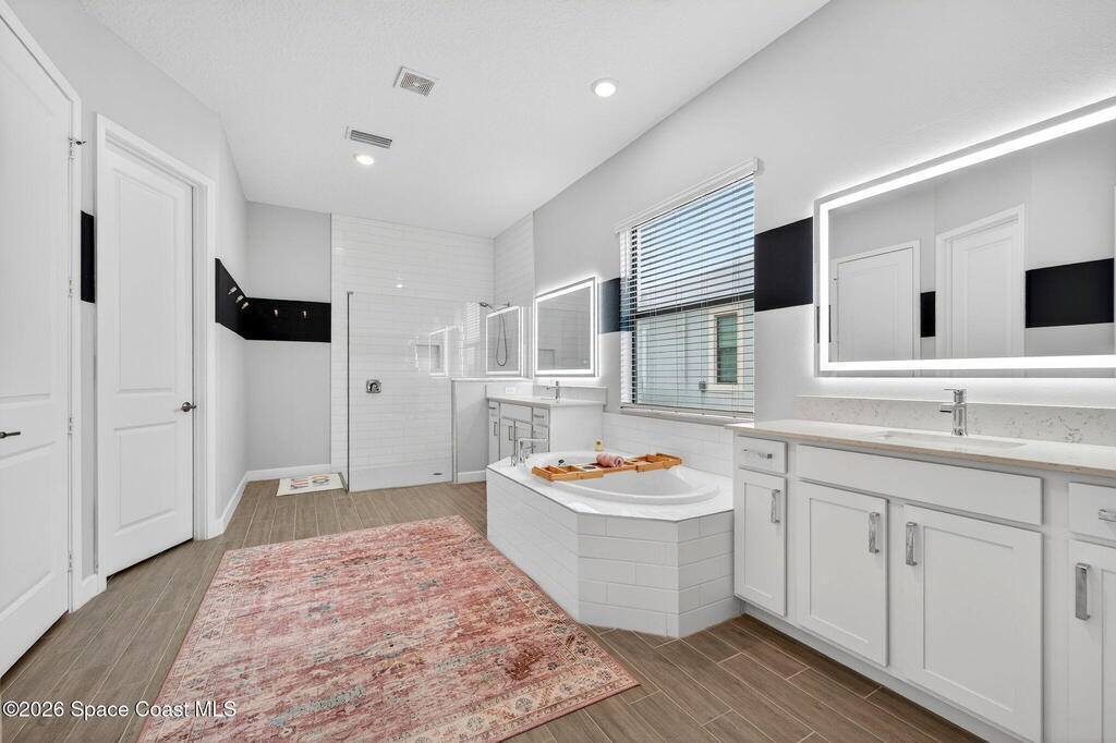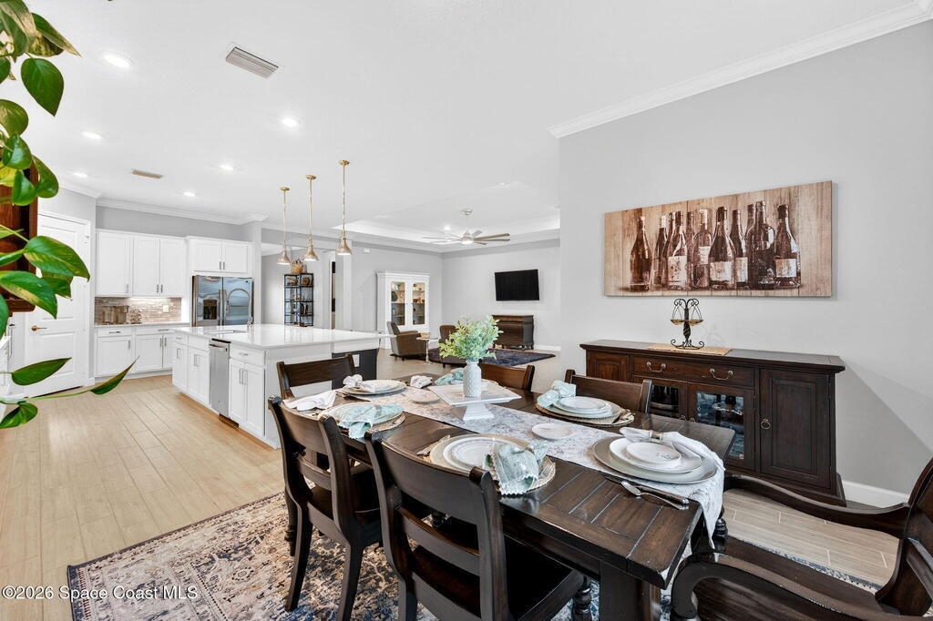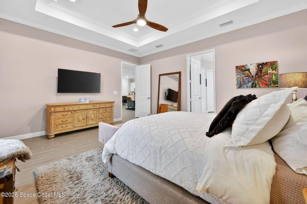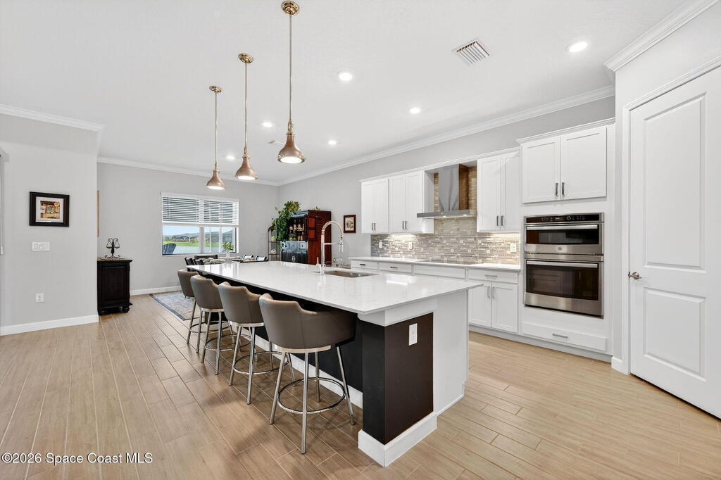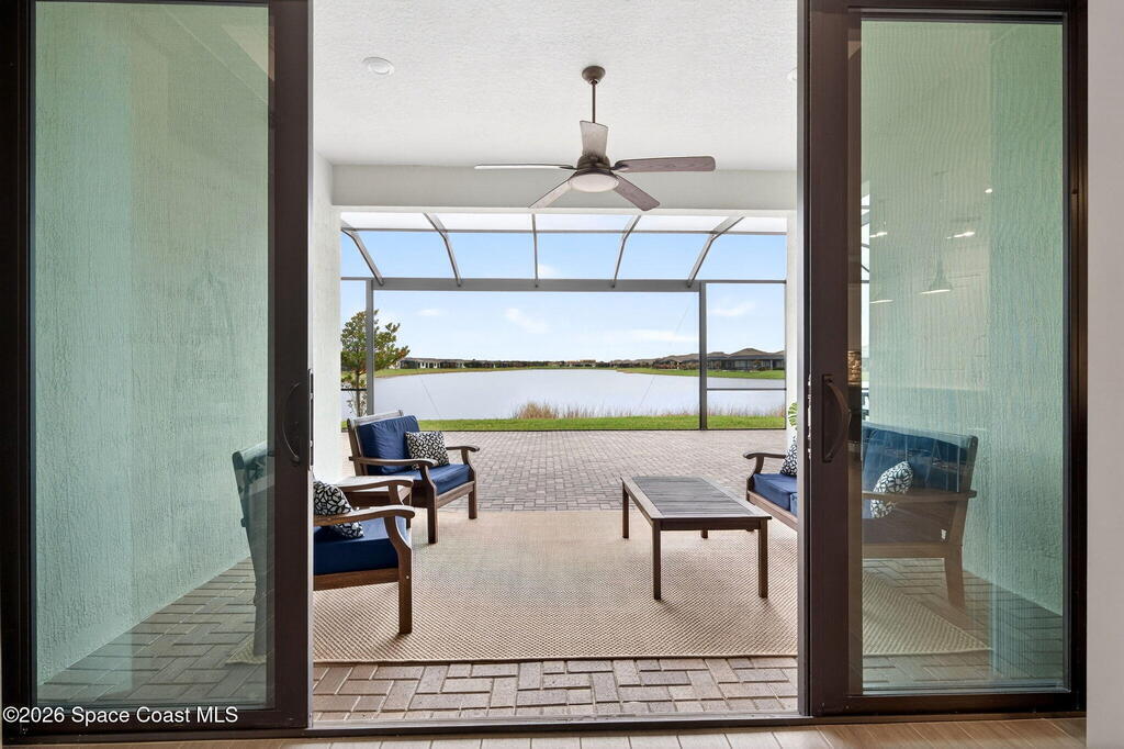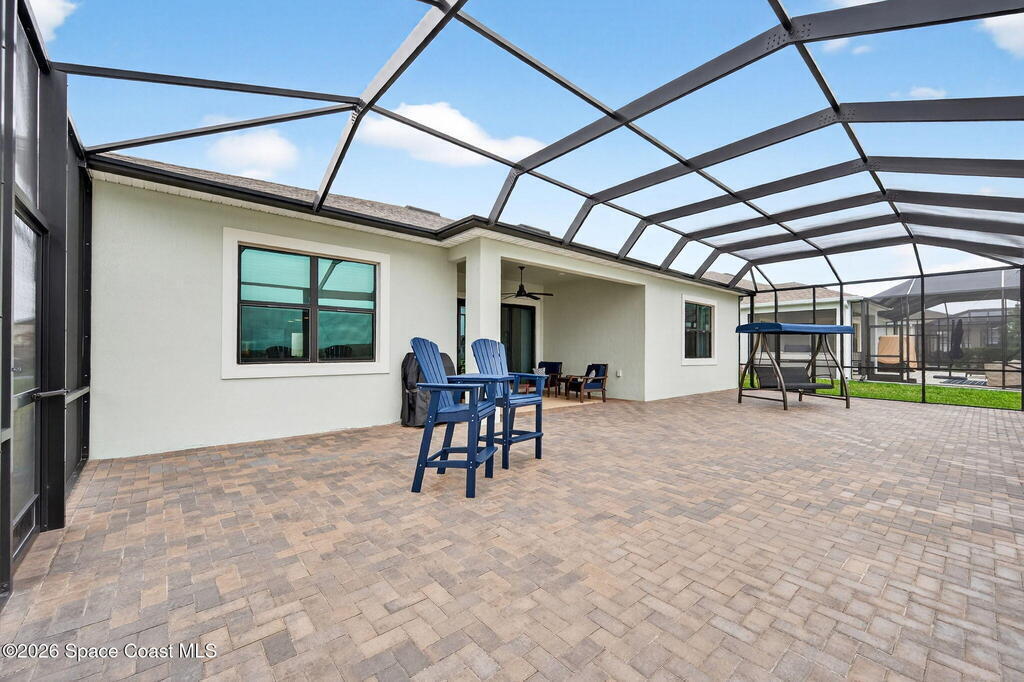 GREAT LAKE VIEW... This 3BR, PLUS FLEX RM (Could be a 4th BR, Guest room, or Office), 3 Full Bath, 3 Car Garage Home with LONG VIEW of the LAKE!!! New in 2022, and Still Looks That Nice, and Better Due to Highly Desired Updates and Upgrades Like the Stylish Full Length Extended Paver Lanai with A DESIRED PICTURE FRAME Rear Enclosure, Tile Plank Flooring Used Throughout Home, Centralized Living RM Area open to Kitchen, Primary Suite and bath with Walk-in Closets w/Professional Grade Organizers, Upgraded Illuminated Mirrors (Heat and Lighting Integrated), Gourmet Kit with Wall Oven, Flat Surface Cook Top, Statement Hood (vented outside), Quartz Counter Tops, Pendant Lighting, Impact Windows. Home has Great LAKE Views from Kitchen, Living Rm, Dining Area, Primary Suite, and Covered Porch!!! Truly a Discriminating Home to Consider!!! All Located with a Upscale Active and Gated 55+ Community Near Costco in Viera!!!