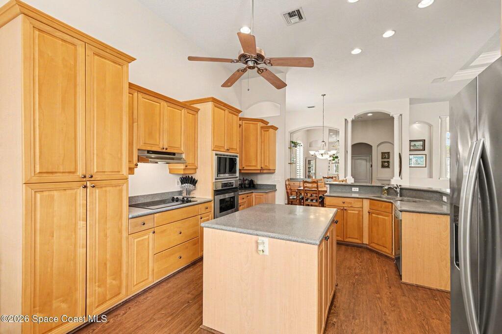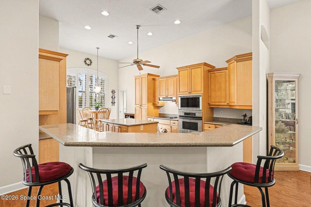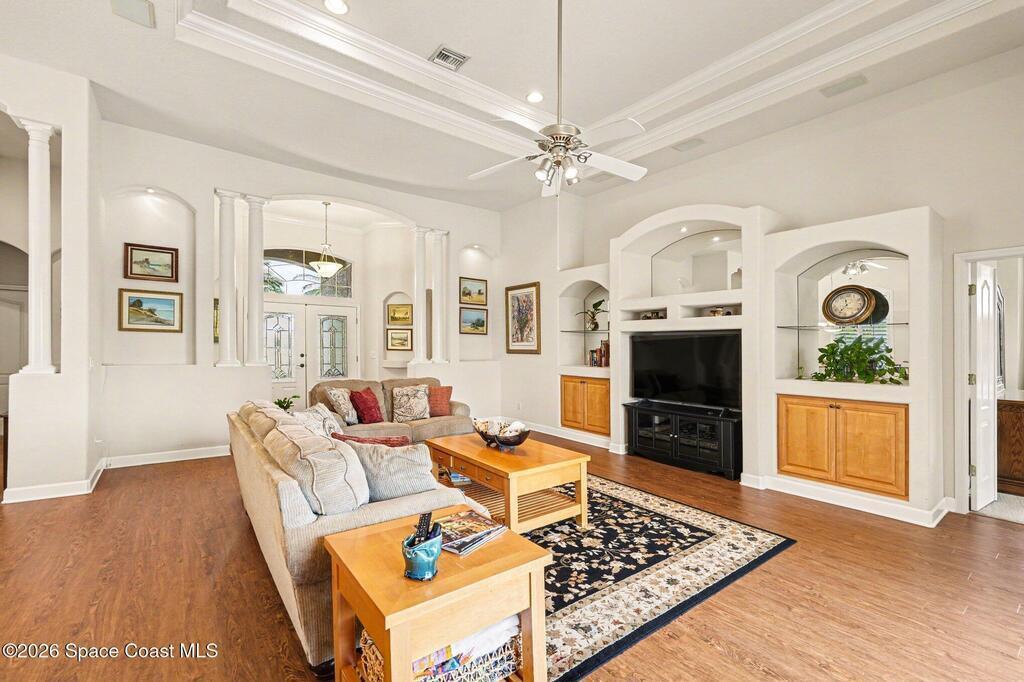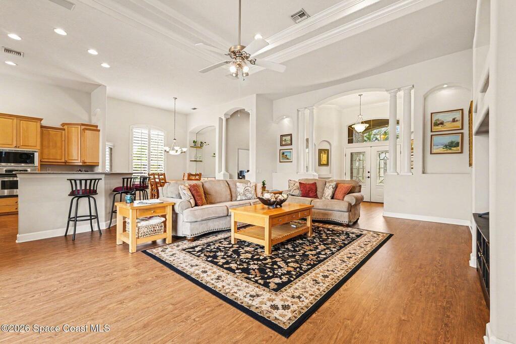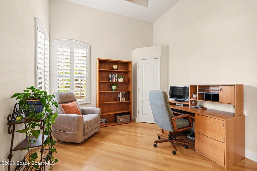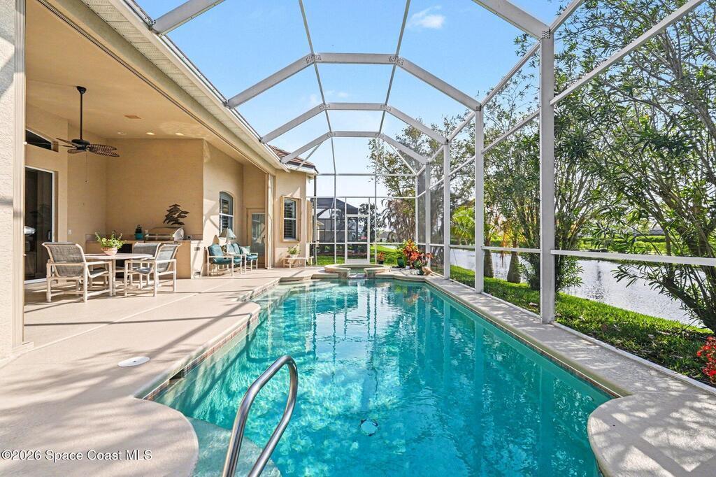 Enter the gated community of St Andrews Isle and enjoy this meticulously and conscientiously maintained 4 BD/ 3BA pool home! The open great room flows seamlessly into the kitchen or onto the lanai creating an inviting hub for everyday living and entertaining. The immense primary bedroom suite offers a true retreat with generous space, abundant natural light, and a spa-like en-suite bath. One bedroom is currently set up as a bright, productive office--perfect for remote work or a quiet study.Enjoy outdoor living at its best in the private screened pool area with summer kitchen, ideal for year-round relaxing and outdoor dining. 2-car garage adds ample storage and convenience. Located in a great neighborhood with easy access to Viera and the beaches, this home puts you close to shopping, dining, and all the essentials--while enjoying the security and serenity of a gated community. This home is in pristine condition and ready for you to move in and make it your own.