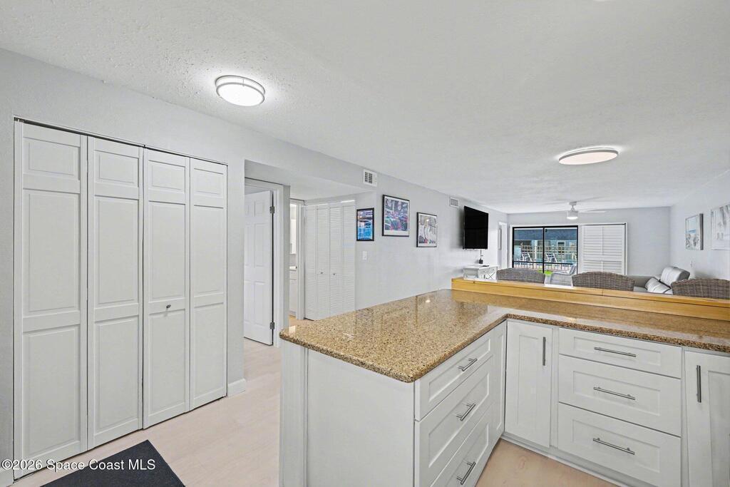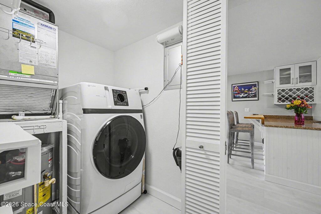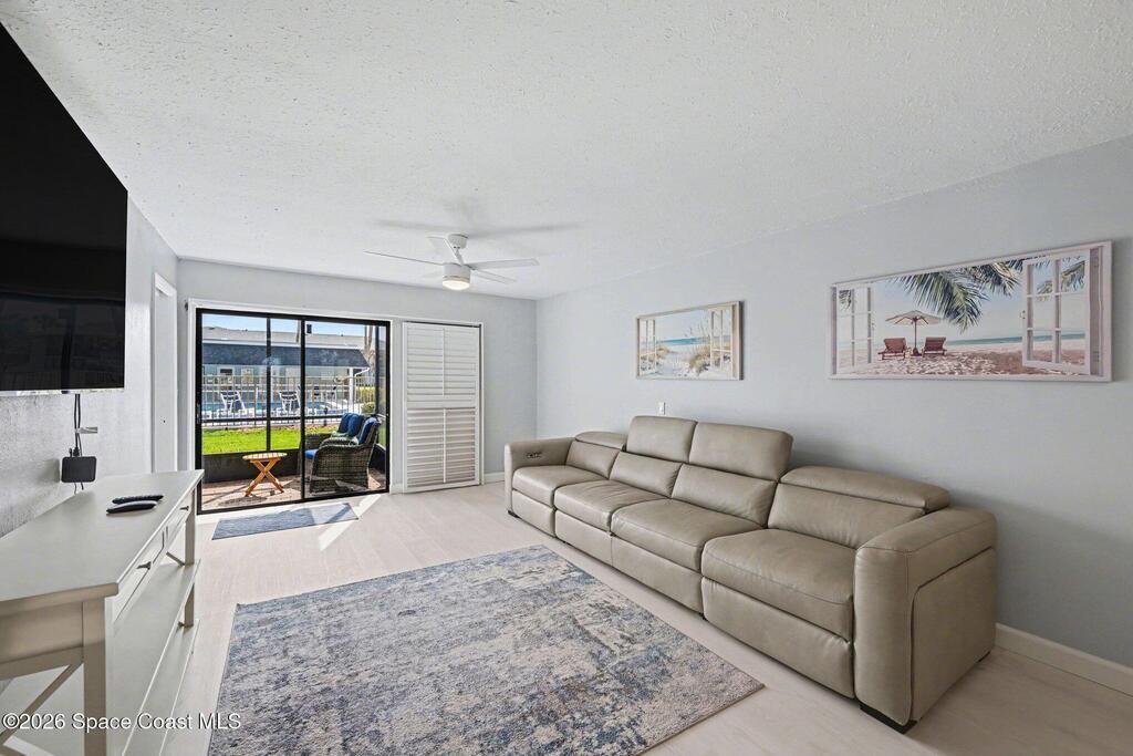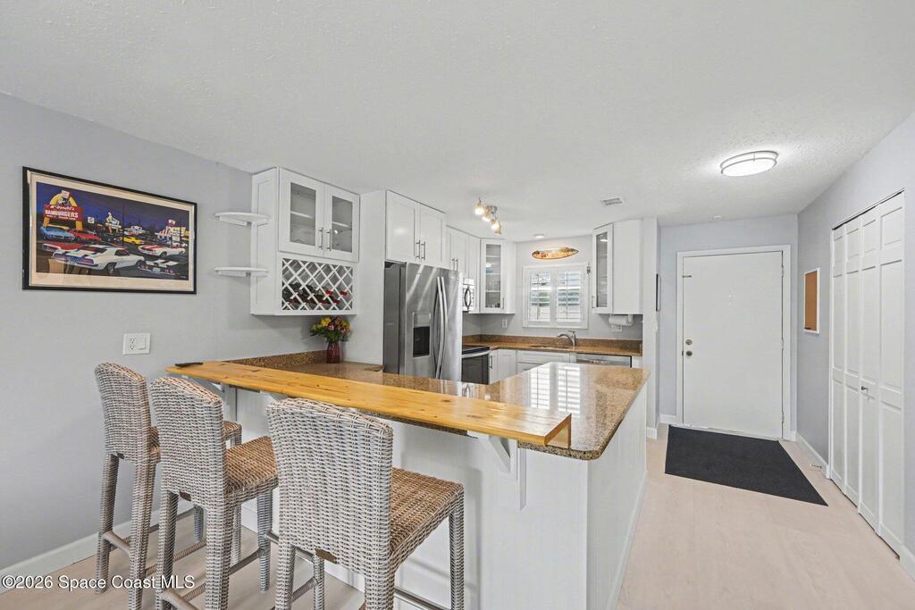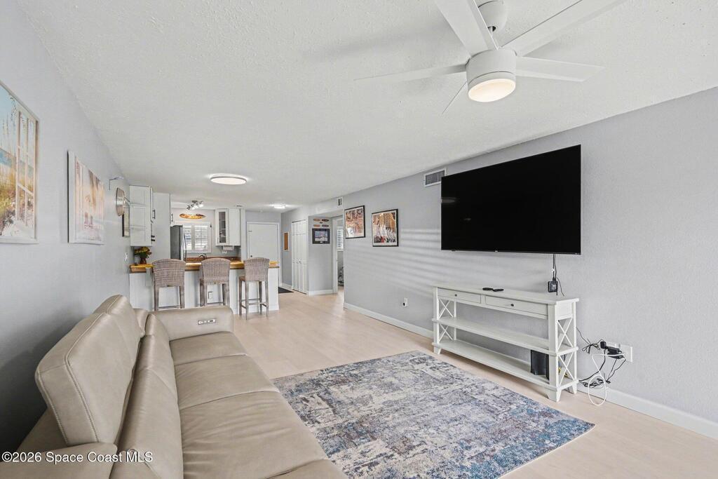 Your new home is your ideal vacation location. Enter into a bright and inviting open-concept living space with new flooring, and updated kitchen that captures the essence of coastal living. This 2-bedroom, 2-bath ground-floor residence offers a combination washer/dryer that saves space and convenience, plus Hurricane shutters to protect your home. The interior flows seamlessly out to your private screened patio to enjoy your morning coffee or unwind in the evening. At The Four Seasons you'll enjoy many amenities, 2 pools (1 heated), picnic area and private boat launch to Banana River, ideal for kayaking, paddle boarding or a view of the unforgettable rocket launches A private storage locker and the bonus of a garage add the convenience of storing your car and beach gear. Whether you're looking for a full-time home or seasonal escape, the furnished condo is ready to move right in. And when you want to explore, you are within walking distance to the beach and several restaurants.