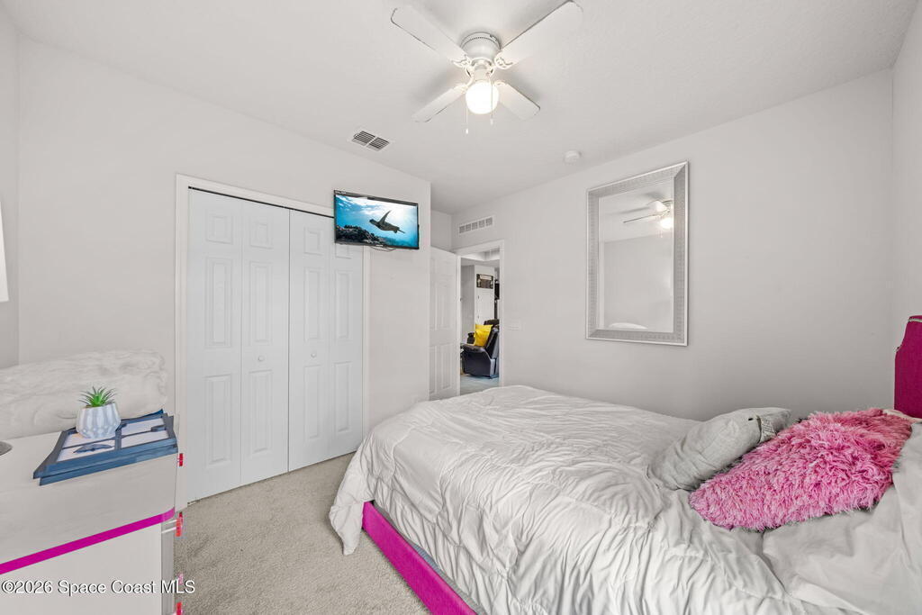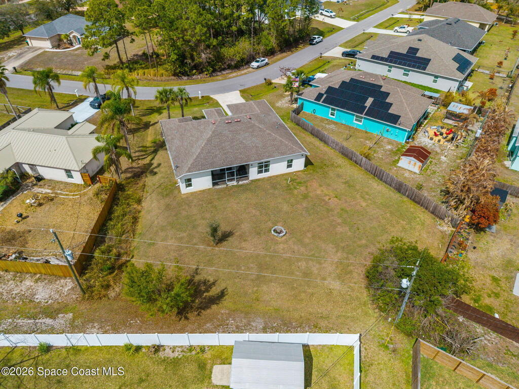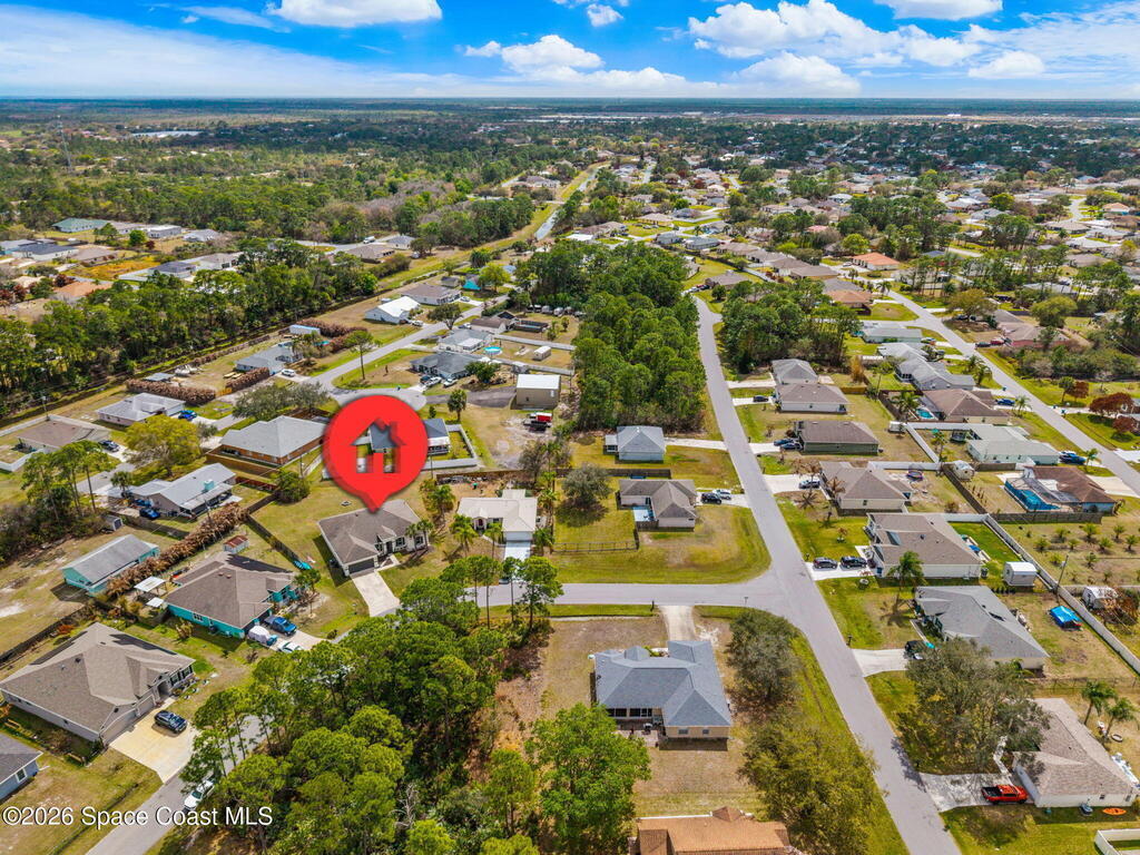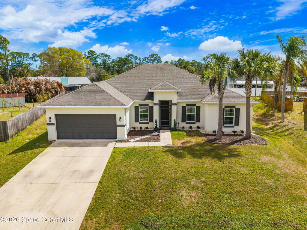 Built in 2019, this well-maintained concrete block home offers modern construction and a desirable location in SE Palm Bay, just minutes from the new Shops of Cypress Bay and everyday conveniences. Connected to city water, the home combines comfort, efficiency, and functionality.Inside, you'll find a bright open floor plan featuring 9'4'' ceilings, tiled living areas, and abundant natural light throughout the main living spaces. The kitchen is designed for both style and practicality, showcasing granite countertops, 42'' cabinets, stainless steel appliances, and a classic subway tile backsplash, all overlooking the main living and dining areas -- perfect for entertaining or everyday living.The spacious primary suite features double sinks, a separate water closet, and a large walk-in closet. A split-bedroom layout provides added privacy, with three additional bedrooms and a shared full bath located on the opposite side of the home.
