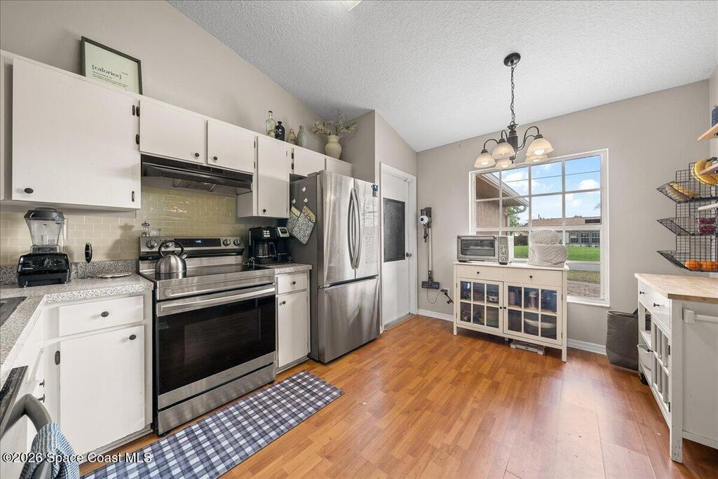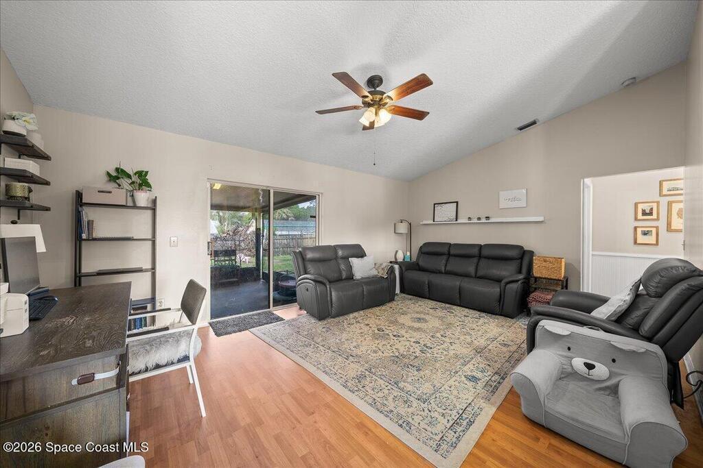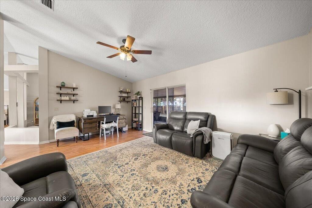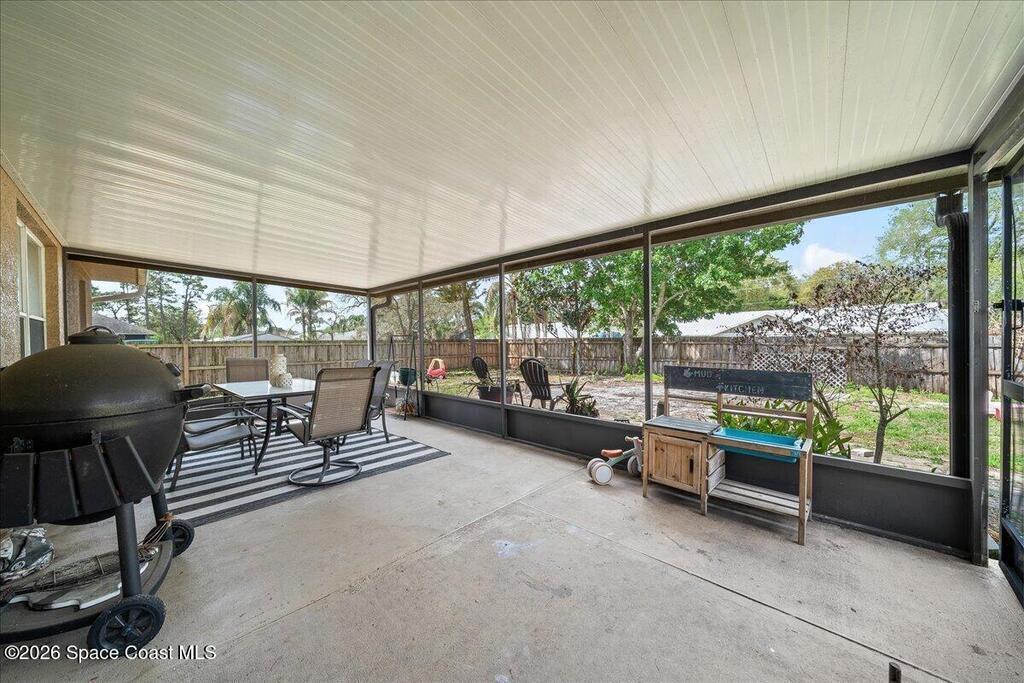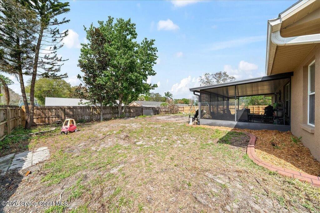 Welcome to this well-maintained 3 bedroom, 2 bath home in Port St. John featuring a desirable split floor plan and spacious layout. The kitchen overlooks the family room, creating an open and connected living space perfect for everyday living and entertaining. A large bonus room offers flexibility for a home office, playroom, or additional living area. Enjoy Florida living year-round from the screened back porch overlooking a fully fenced backyard with plenty of room to relax or play. Major updates include a 2019 roof, 2018 HVAC, and a 2026 water heater for peace of mind. Conveniently located just a short drive to the beaches, Kennedy Space Center, and Orlando, this home offers both comfort and accessibility.