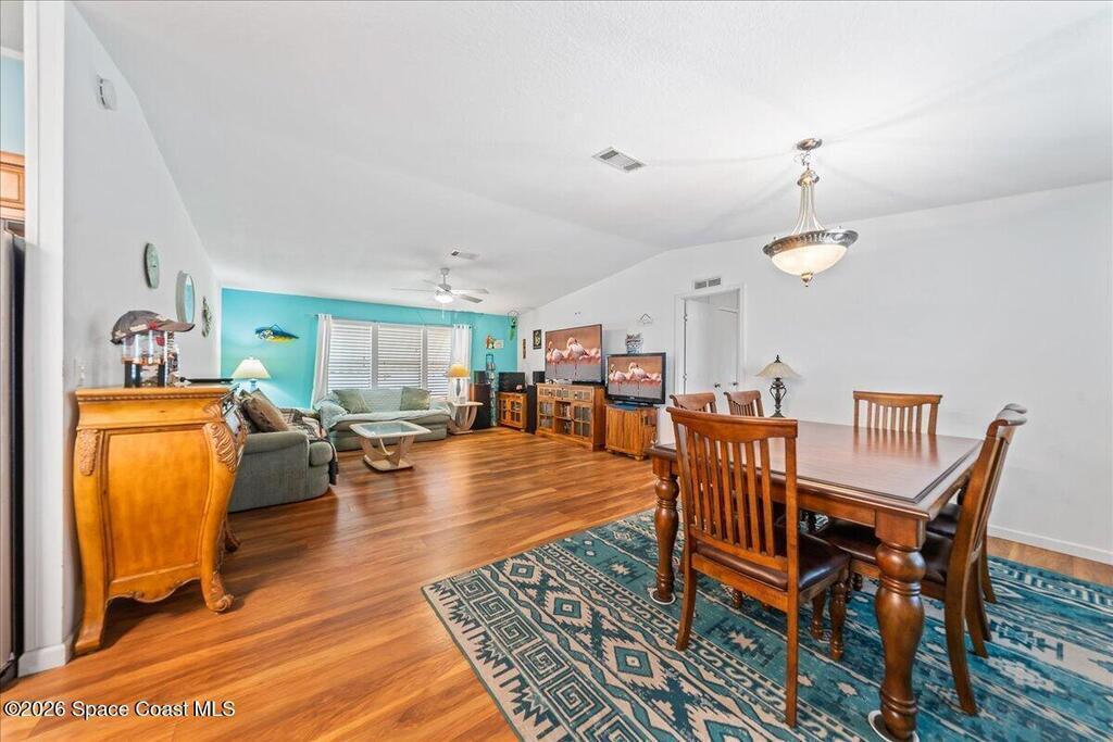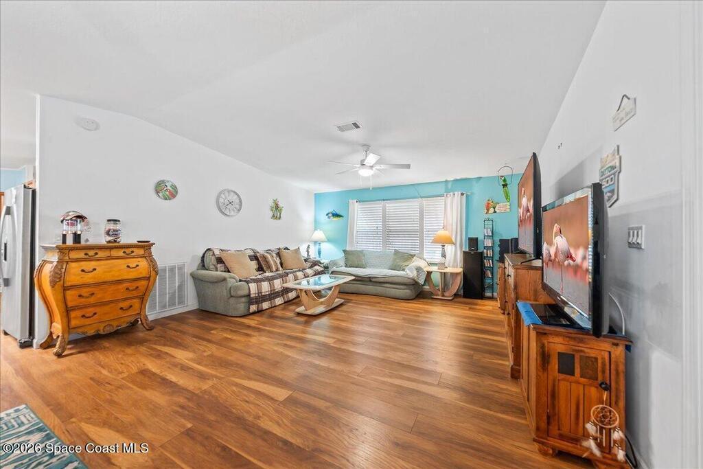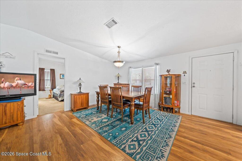 Florida living with a community vibe! Whether you are looking for a vacation home or year-round, this beautifully maintained 3-bed, 2-full bath home in Snug Harbor Lakes is ready to welcome you. Split 1, 620 sq ft plan offers newer metal roof, new HWH, updated flooring, vaulted ceilings, modern kitchen cabinetry, kitchen island with spacious dining area and separate laundry room with washer (new) and dryer included. Primary suite features walk-in closet, spacious primary bath with walk-in shower, private water closet, and separate dual vanities. Additional features include new strappings on carport, freshly painted double wide driveway, storage shed with electricity and Florida room with air and heat. Your Florida lifestyle is calling. Don't miss this opportunity! Come see what makes this home special and imagine the next chapter beginning here.
