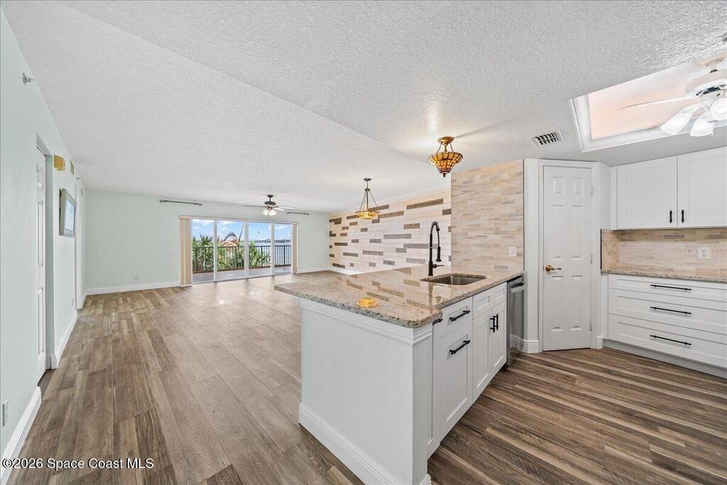 Experience easy Florida living in this wonderful 2-bedroom, 2-bath condo in sought-after Oleander Pointe, perfectly positioned just south of Historic Cocoa Village. Enjoy great views of the Indian River, pool, & marina from this beautifully updated residence, ideally located near charming shops, fabulous restaurants, & the beloved Historic Cocoa Village Playhouse. This unit features a completely updated kitchen with granite countertops, stainless steel appliances, & soft-close cabinets & drawers. The living & dining area offers new vinyl plank flooring & a stylish shiplap accent wall, creating a warm, coastal feel that is both inviting & modern. The HVAC system was replaced in 2018..Oleander Pointe offers an exceptional lifestyle with HOA dues covering water, sewer, trash, cable, internet, exterior maintenance, roof replacement, insurance, & access to amazing amenities including a pool, clubhouse, fitness center, sauna, tennis/pickleball/basketball/shuffleboard courts.