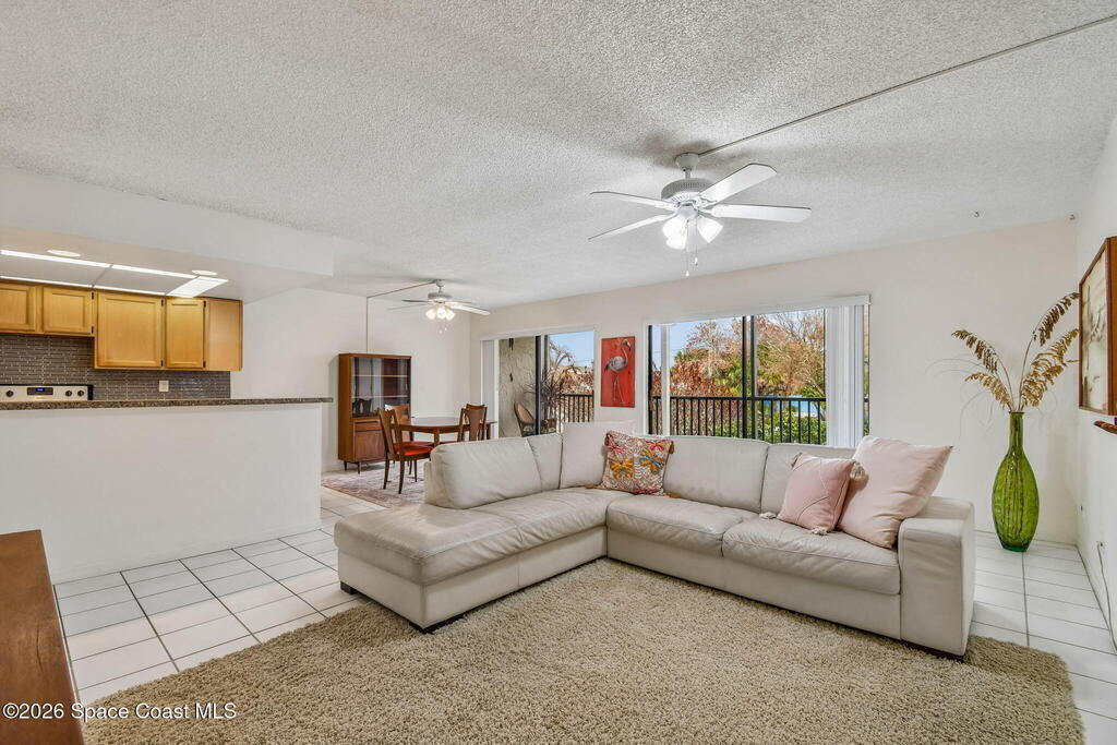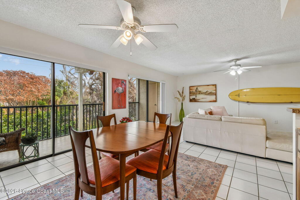 Step inside and fall in love with this beachside condo. Perfectly positioned across the street from the beach, you're only steps from the sand and surf. The private balcony feels like a hidden retreat. Enjoy peaceful morning sunrises and afternoon sunsets. At sunset, the sky casts a beautiful reflection to the east, illuminating the surrounding foliage and radiates a serene colorful glow into the condo. There is something wildly unique about the character and wide-open living area you'll find here. The expanded kitchen is a standout feature - thoughtfully designed with incredible storage, generous counter space, and an open layout. Add an extra-large primary suite with a cool retro mid-century modern touch to seal the deal. This well-maintained community has no upcoming assessments. Concrete restoration is complete. New roof, mansard, soffits, and gutters 2025. Located in South Cocoa Beach, the Seville is a hidden gem that rarely gets noticed.