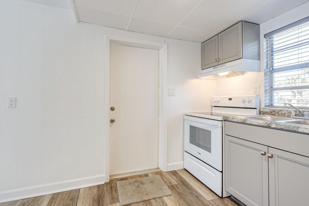Just a stones throw to the beach from this completely remodeled unit. All tile/laminate flooring, brand new white cabinetry & appliances for your convenience. Brand new mini splits in the bedroom & living room. Spacious patio to enjoy cooking out and living the beach life. This is a separate unit from the duplex on the property. No smoking/no pets, owner requires good credit and first, last & sec