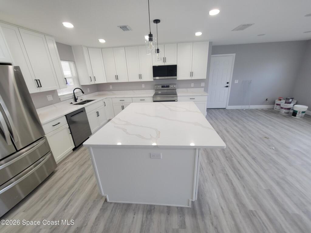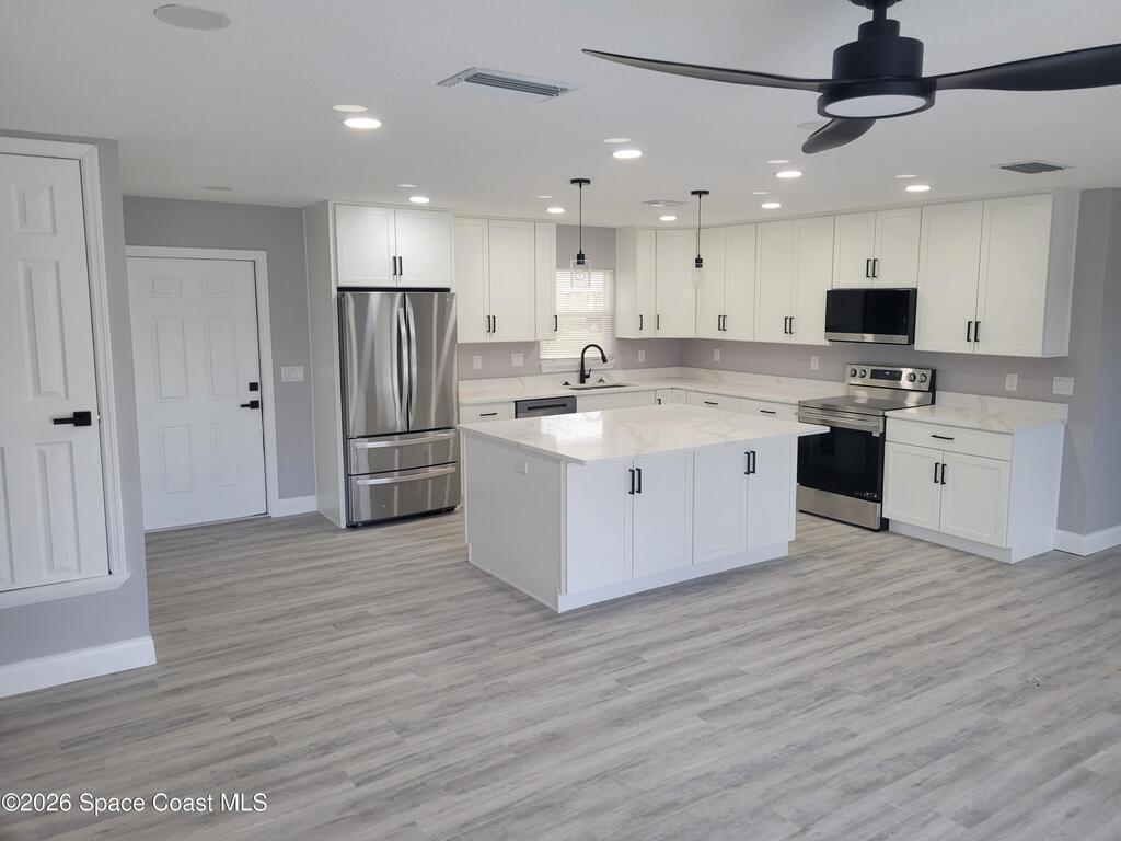This professionally remodeled 3-bedroom, 2-bathroom home is a must-see. All renovations were fully permitted and inspected, ensuring high quality and long-term peace of mind.The property features an open-concept layout to make the home feel much larger, and a chef's kitchen equipped with 42-inch cabinets, a large island, and quartz countertops. Extensive upgrades include new impact windows, PVC drains, Pex water lines, a complete 200-amp electrical system, and a new air conditioning unit.With fully remodeled bathrooms, new doors and trim, and modern black fixtures throughout, this home stands out for its exceptional attention to detail. This is a renovation built to last.