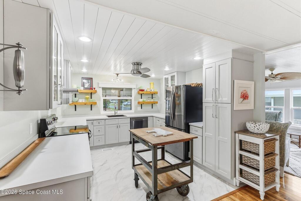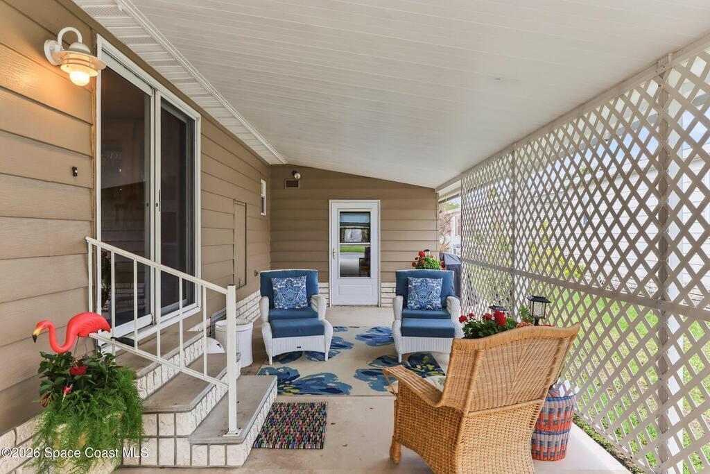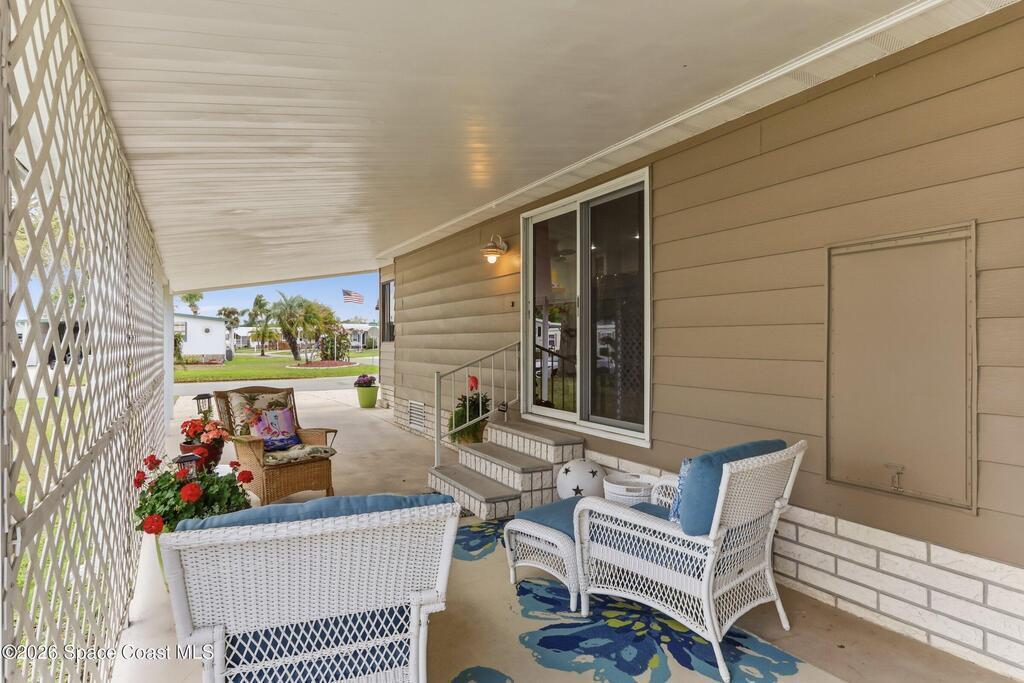 Come see this magnificently updated 2BR/2BA home in the heart of amenity-rich Barefoot Bay, near the golf course and just a short walk to one of three pools! The double driveway and carport lead to a private patio area. Step inside to a fully remodeled interior, featuring an 11x12 kitchen with all matching Samsung stainless steel appliances, deep sink, and ample counter space for all those culinary wizards. An open dining area flows into a spacious living room and enclosed sunroom, complete with AC and sliding windows--perfect for relaxing or entertaining. Both bathrooms are beautifully renovated and boast glass-tiled walk-in showers. Additional upgrades and improvements include an impact sliding door, double-pane windows, Hardie-board siding at the enclosed sunroom, plywood subfloors, insulated and drywalled interior walls, PEX water supply lines, vapor barrier, Roof 2018, AC 2019, and the list goes on...With the included storage room or workspace, this is truly a move-in ready home!