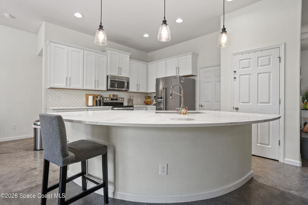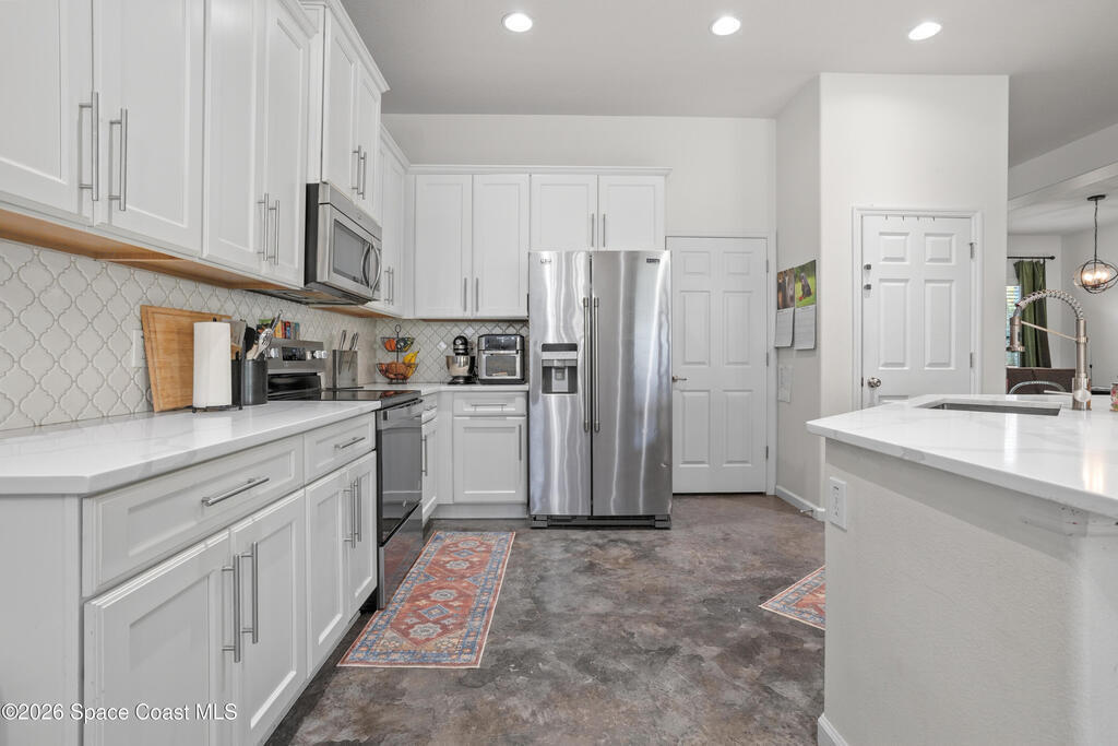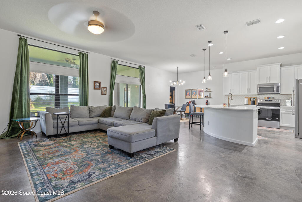 Welcome to this beautifully maintained, move-in ready home where style meets comfort. Designed with an open-concept floor plan, this 4-bedroom, 3-bath gem features sleek, custom-stained concrete floors and a bright modern aesthetic throughout. The spacious primary suite offers a relaxing retreat with a walk-in closet and a spa-inspired bathroom. One of the additional bedrooms serves perfectly as a private mini suite, ideal for guests, in-laws, or a home office with its own bath and patio access. At the heart of the home, the kitchen's generous space and seamless flow into the family room create a perfect environment for entertaining or everyday living. Outside, enjoy a fully fenced backyard designed for both privacy and charm with plenty of room to unwind and entertain. Every detail has been carefully curated to create a home that is as functional as it is inviting. Located in a well-kept neighborhood, this property offers a perfect blend of modern design, comfort and curb appeal.