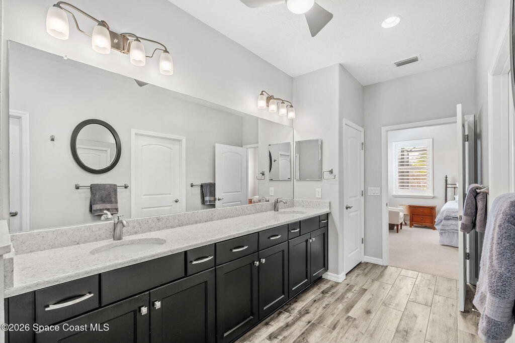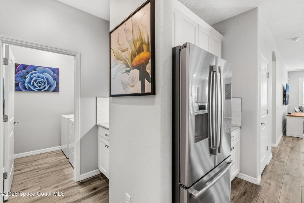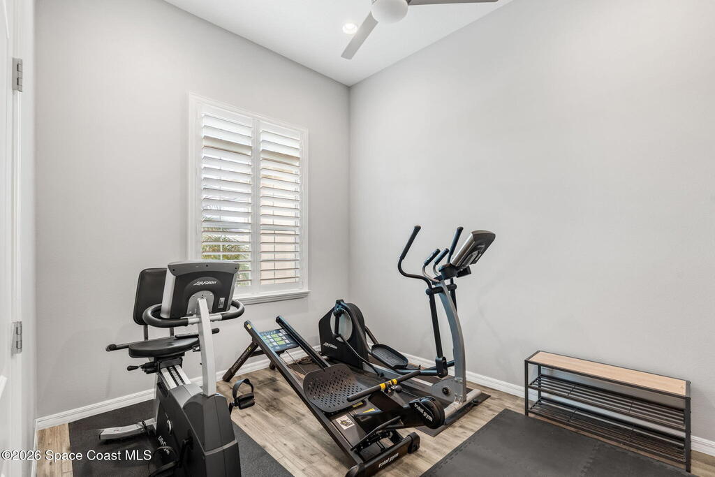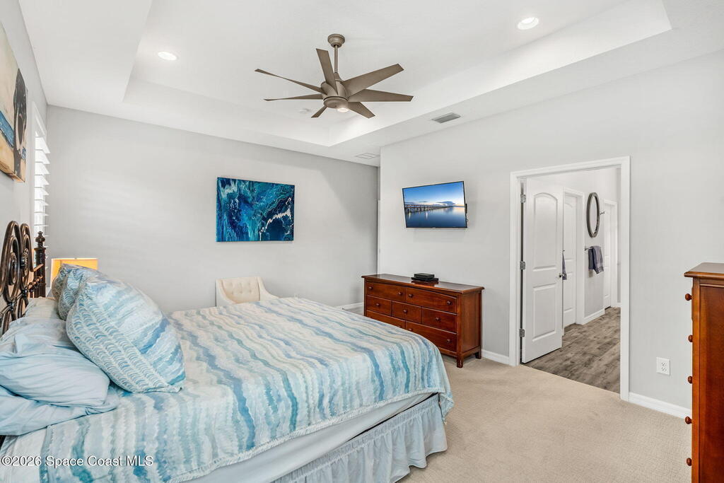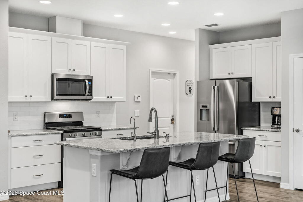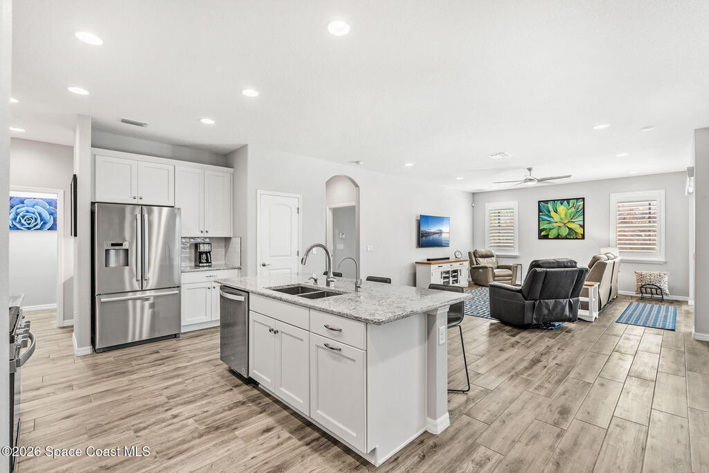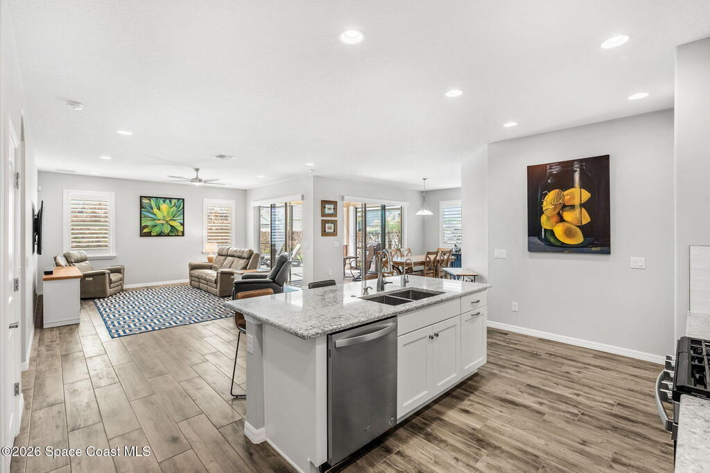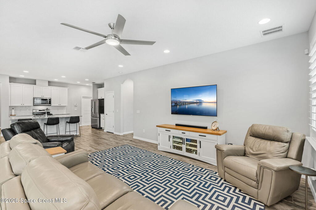 Welcome to Trasona in West Viera, where everyday living feels a little more like a getaway. This popular Siesta floor plan offers 4 bedrooms, 2 bathrooms, and a rare 3-car garage across 2, 154 square feet of thoughtfully designed space that just flows.From the moment you walk in, it feels easy. Natural light pours through plantation shutters, the layout is open without feeling overwhelming, and every space has a purpose. The kitchen is truly the heart of the home, with quartz countertops, plenty of cabinet space, and extra storage in the laundry room. Whether you're hosting friends, helping with homework at the counter, or just enjoying a quiet night in, this space works for real life. The primary suite offers a calm, private retreat, complete with custom closet upgrades that make staying organized simple. Throughout the home, you'll find practical upgrades like impact windows and accordion shutters for patio and a tankless gas water heater that add both comfort and peace of mind.