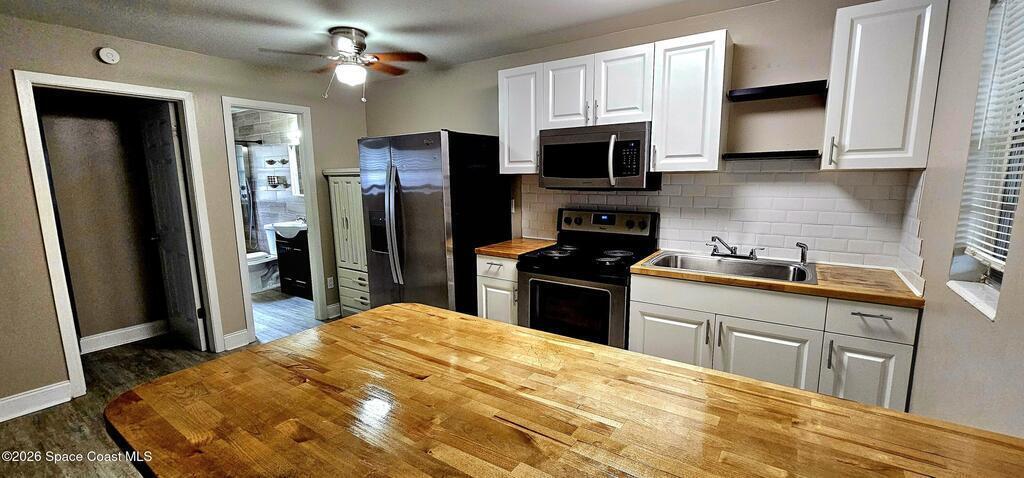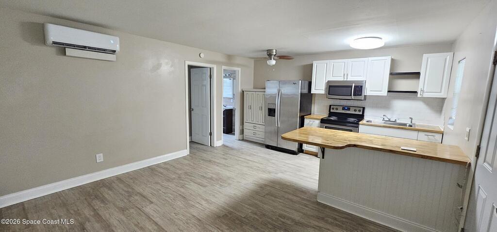 ALL UTILITIES INCLUDED! LOCATION-LOCATION Nestled in the beautiful Titusville area, this unique and spacious one-bedroom, one-bath unit offers comfortable living with an open floor plan and modern touches throughout. Enjoy peace of mind with all utilities included--electricity, water, internet, and basic cable--making budgeting simple and stress-free. The home features updated flooring, fresh paint, and a stylish butcher block countertop that adds warmth and character to the space. Conveniently located near the downtown district and within walking distance to Titusville High School, this private setting offers a quiet atmosphere with respectful, peaceful neighbors. Residents share a backyard and have access to on-site coin-operated laundry. The unit includes one designated parking space, with additional street parking available if needed