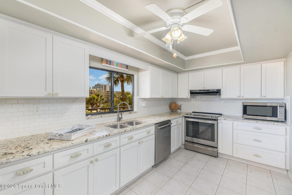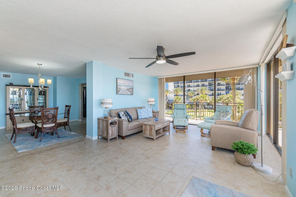 Live in the heart of COCOA BEACH! 2100 Towers is an Oceanfront Complex, with HEATED Pool, PRIVATE Walkover to the BEACH, SECURED Building, Exercise Room, Tennis Court and a Car Wash Station! The 2BR/2BA condo boasts an OPEN floor plan, UPDATED kitchen and baths, and fresh interior paint. Two large reconfigured closets in the Primary Bedroom! Complex has a NEW ROOF too! New Stainless Steel appliances, NEW Washer and Dryer and new HVAC! Electric Hurricane shutters protect the floor to ceiling sliders and windows that give you an AMAZING view of the Florida Sunsets! Just a short walk to grocery store, pub, restaurants, hair salons, medical facilities, and more! The SW Corner unit has a wraparound balcony with VIEWS of the ocean! Includes a detached 1 CAR GARAGE!