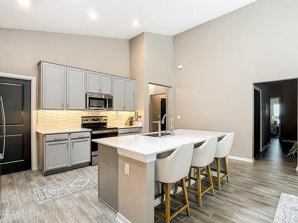 Like-new without the wait.This 2021-built, 4-bedroom + den home in St. Cloud delivers the space, layout, and upgrades buyers are looking for, featuring an open-concept design, quartz kitchen with oversized island, and a 3-car garage. The private owner's suite offers a true retreat, while the large backyard gives you room to create your dream outdoor setup. Solar panels add efficiency and long-term savings.Located in a growing community with resort-style amenities and close to everything, this one checks all the boxes.Additional Updates:Custom modular closet systemCustom pantryCustom garage storage systemWhole Home Water SoftenerReverse Osmosis Drinking Water TapRenovated powder room