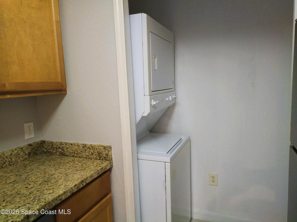 1st floor Condominium in quiet, gated community of The Village at Melbourne. 2 Bedrooms with 2 full bathrooms. Great condition and move-in ready. Stainless steel appliances with a brand-new range and dishwasher. Refrigerator approximately one year old. All tile floors. Includes stacked washer and dryer in unit. Breakfast bar in the living/dining room combo. No neighbors to the rear, as covered porch faces the park. HOA provides insurance, lawn maintenance, clubhouse, fitness center, and fenced pool. Pets under 25 lbs may be considered for a non-refundable pet fee.