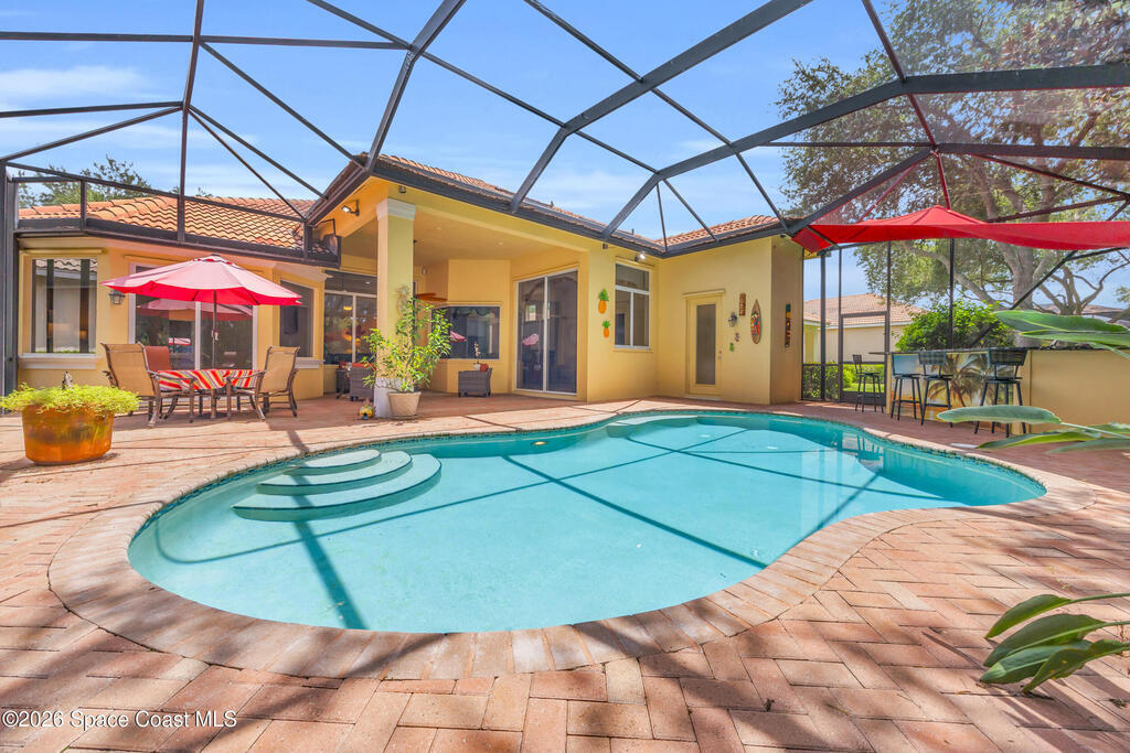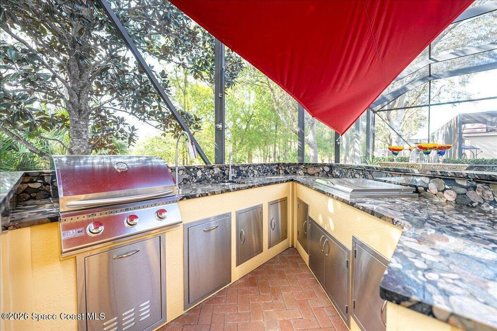 Tee up your Florida lifestyle at 8821 Champions Way in the prestigious PGA Village.Fully furnished and move-in ready, this 3 bedroom, 3.5-bath home offers over 2, 300 sq. ft. of bright, open living space overlooking the golf course.Step outside to your private solar-heated, screened-in pool with cabana bath, or fire up the brand-new outdoor kitchen , complete with sink, ice well, grill, and granite seating for six, perfect for post-round gatherings.Inside, soaring 15' ceilings, oversized 12' sliding glass doors, and tile flooring throughout create a light, airy feel. The chef's kitchen boasts granite countertops, 42'' cabinets, stainless-steel appliances, plus a reverse osmosis system at the sink for pure, great-tasting water. The spacious primary suite features dual sinks, a soaking tub, and a separate shower, while peace-of-mind upgrades include a brand-new hot water heater and a whole-house water filtration system.