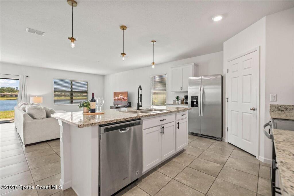 Welcome to your private retreat in the highly sought-after Preserves at Stonebriar in Bayside Lakes! This well maintained 4 bedroom, 2 bath home offers the perfect blend of comfort, space, and serene waterfront living. Situated on a picturesque pond with a tranquil fountain, this home delivers peaceful views right from your own backyard-ideal for morning coffee or evening relaxation. Inside, you'll find a spacious and functional floor plan with generous living areas, a well appointed kitchen, and plenty of natural light throughout. With tile floors throughout the main living and wet areas, and a large kitchen island, this open concept floor plan is perfect for everyday family gatherings or entertaining guests! The split bedroom layout provides privacy for the primary suite, while 3 additional bedrooms offer flexibility for family, guests, or a home office. The primary en-suite includes a large bathroom with private water closet, double vanity, linen and large walk in closets!