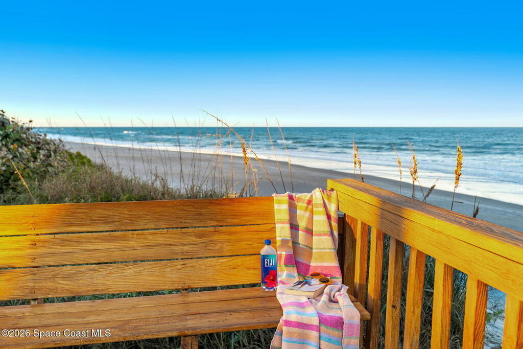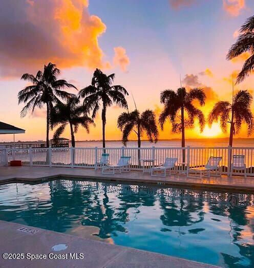 Waterfront Cottage! 2/2 home in a lil seaside town w/panoramic waterfront views, PLUS private community beach access! Available now, min. 6 months. Catch historical rocket launches & amazing sunrises from the huge private community dock! Paddleboard, fish, kayak, walk for miles along the beach or opt to swim in the waterfront heated pool. At home, nature surrounds you with birds singing, wildlife and amazing sunsets over the Indian River. The lovely decor in this fully furnished immaculate gem reflects the tranquil lifestyle of Melbourne Beach. Whether you're searching for serenity or want to join the community events & activities, this 55+ no pet community will feel like home~Only 5 min.to the area's most charming town center, Spessard Holland golf course, unique boutiques, cafes, restaurants & grocery stores. 20 min. to Melbourne Airport & world famous Sebastian Inlet. 1hr. to Kennedy Space Center, SpaceX, cruise ship from Port Canaveral. 1.5 hrs. to Disney, Orlando Airport