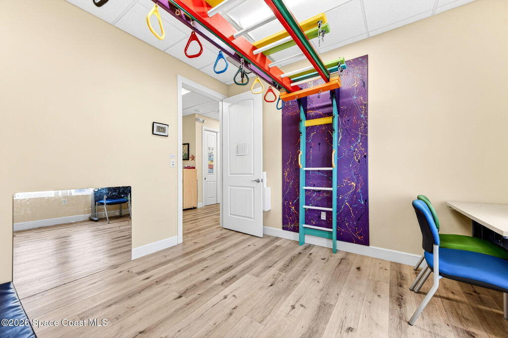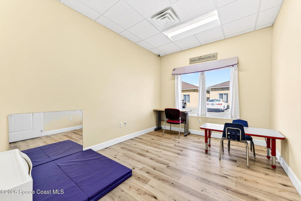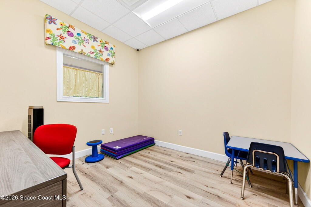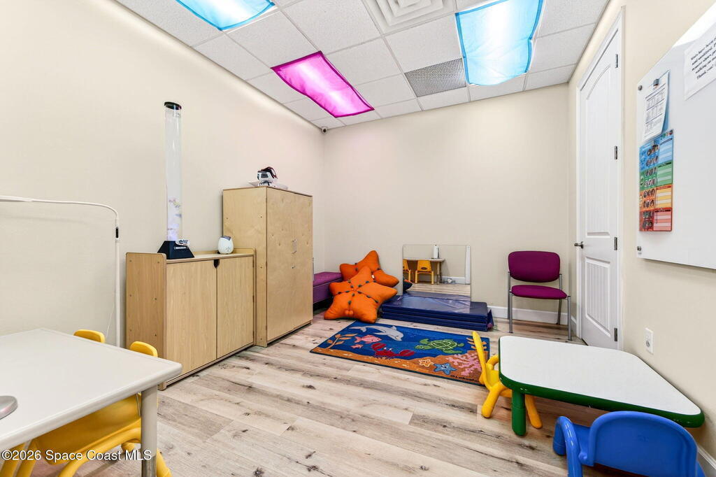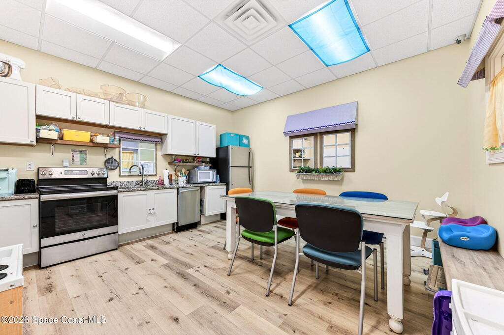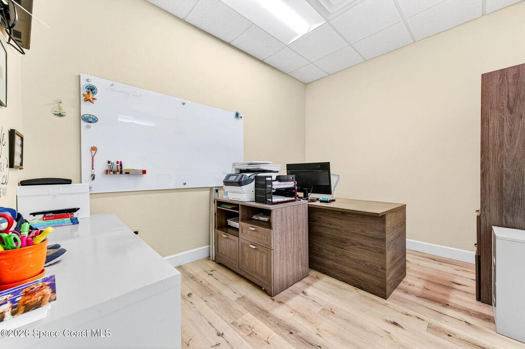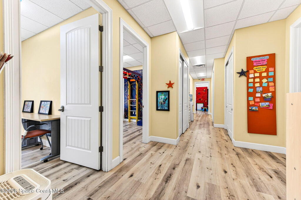 This fully built-out, move-in ready medical office offers 3, 036 square feet and is ideally suited for, but not limited to, behavioral, occupational, or physical pediatric therapy, with a layout designed for both functionality and patient comfort. The space features a welcoming reception area with waiting room and dedicated restroom, along with a total of three bathrooms throughout the suite. There are eight large private offices, five storage closets, and a spacious multipurpose room currently configured as a children's activity and therapy area. Additional amenities include a central sink in the main hallway, a large break room with full kitchen, including refrigerator, dishwasher, and electric stove, as well as a dedicated laundry room with stackable units. The interior is bright and inviting, with eight-foot doors and durable LVP flooring throughout.