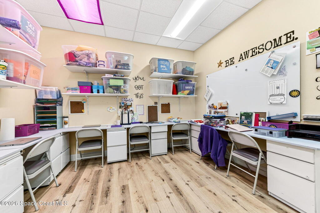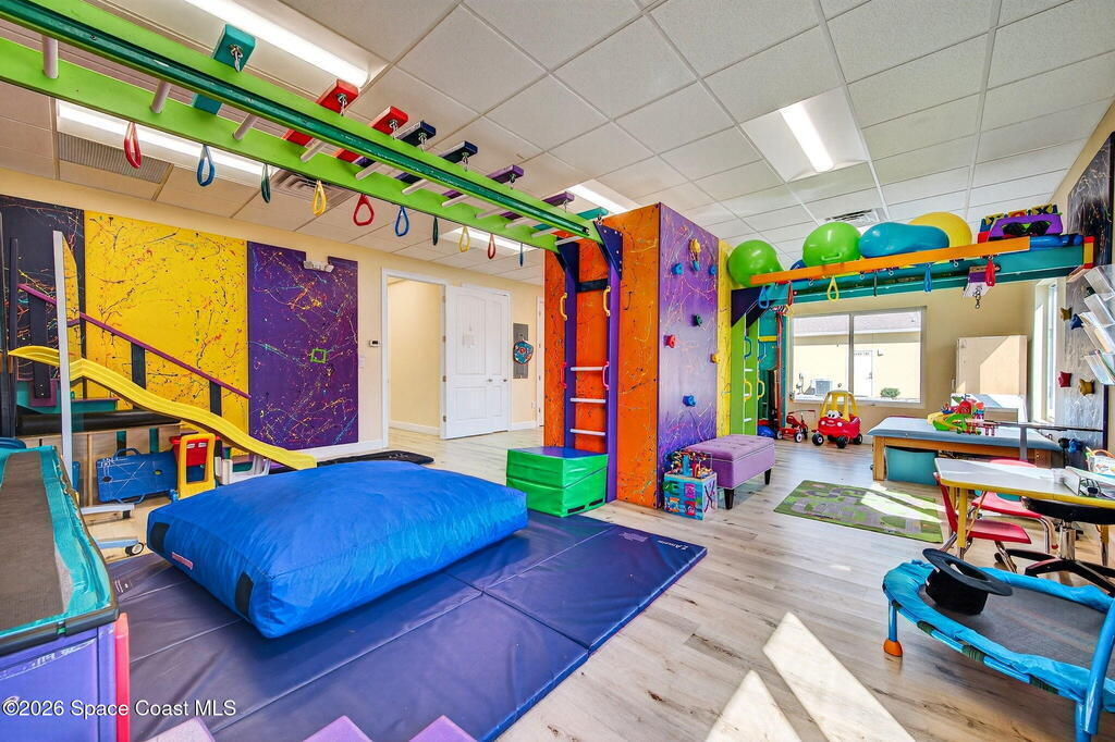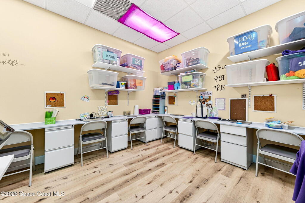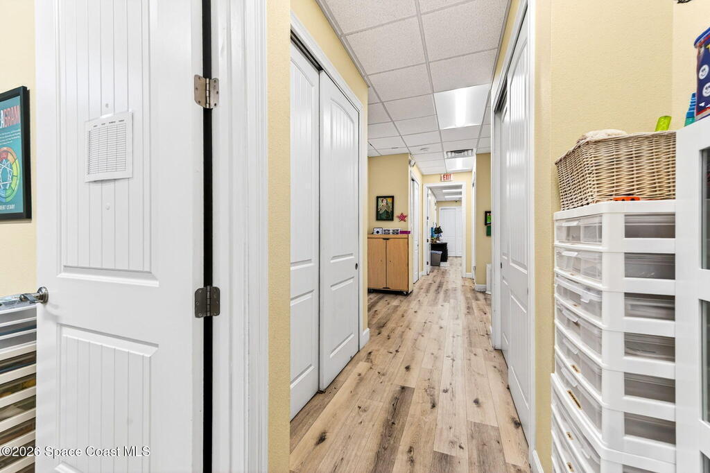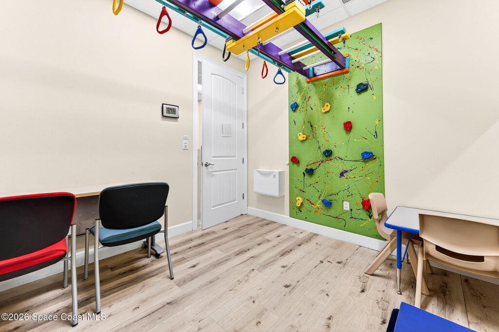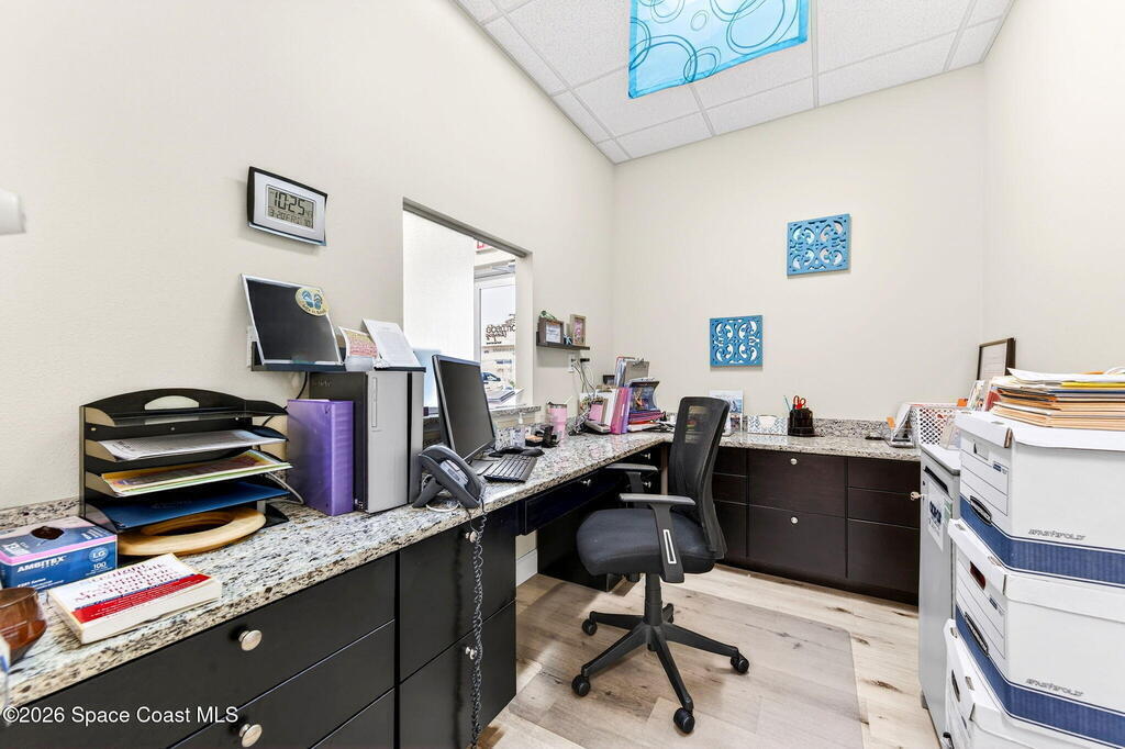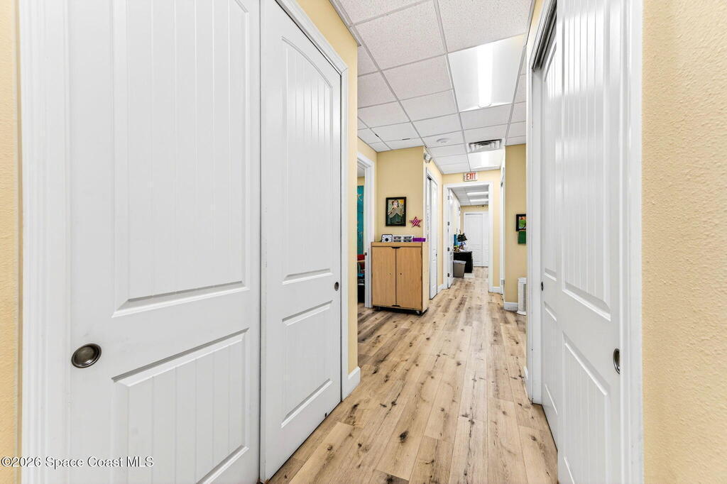 This fully built-out, move-in ready medical office offers 3, 036 square feet and is ideally suited for, but not limited to, behavioral, occupational, or physical pediatric therapy, with a layout designed for both functionality and patient comfort. The space features a welcoming reception area with waiting room and dedicated restroom, along with a total of three bathrooms throughout the suite. There are eight large private offices, five storage closets, and a spacious multipurpose room currently configured as a children's activity and therapy area. Additional amenities include a central sink in the main hallway, a large break room with full kitchen, including refrigerator, dishwasher, and electric stove, as well as a dedicated laundry room with stackable units. The interior is bright and inviting, with eight-foot doors and durable LVP flooring throughout.
