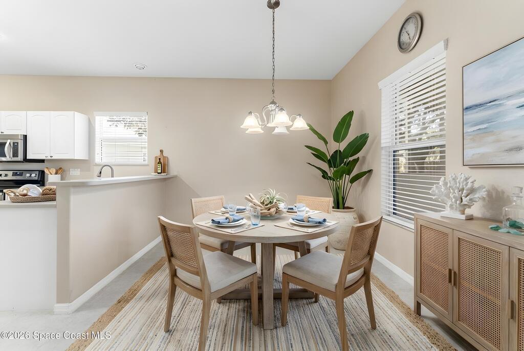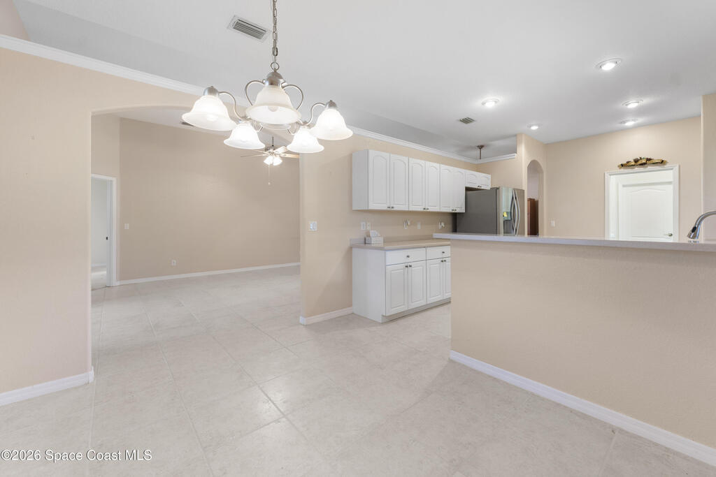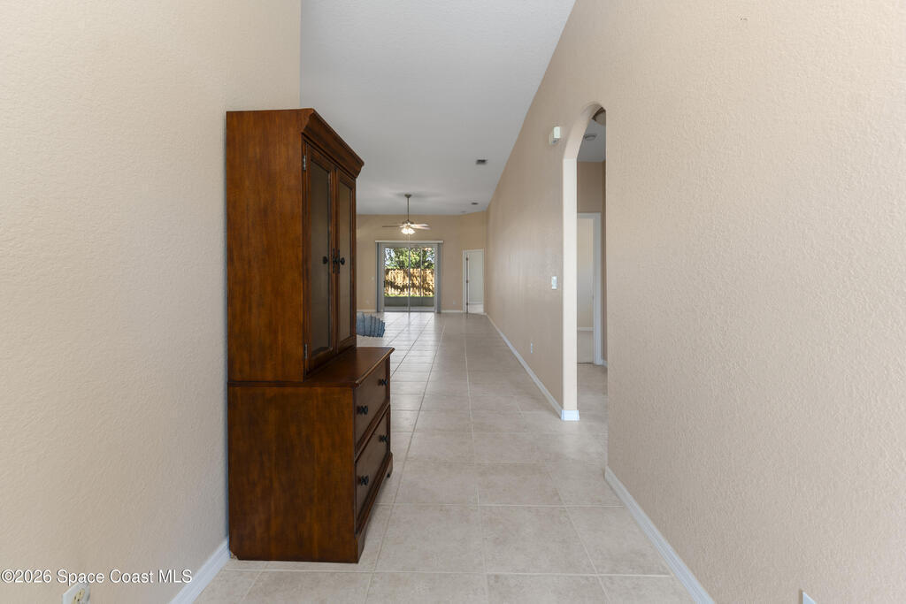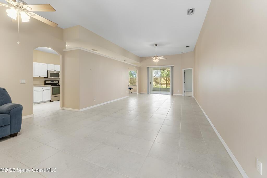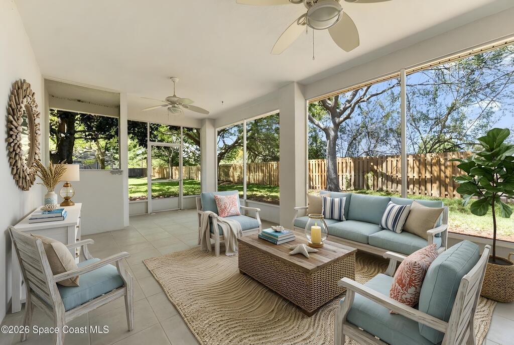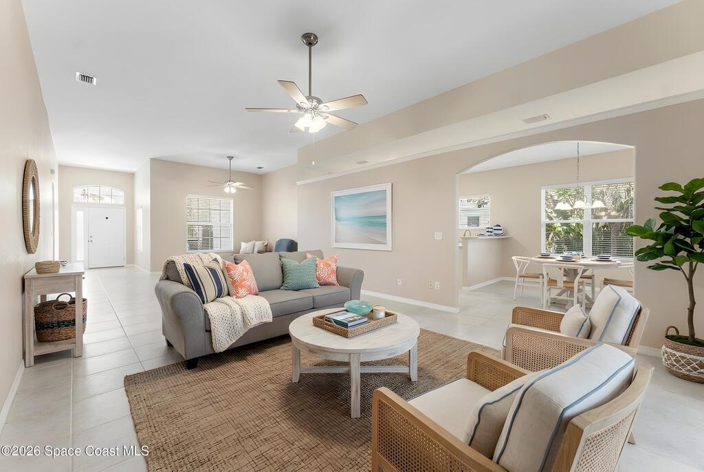 Welcome to this beautiful 3 bedroom, 2 bath home nestled in the desirable 55+ community of Compass Pointe in West Melbourne. Designed for both comfort and ease of living, this residence offers a spacious and functional layout perfect for relaxed Florida living. Step inside to find tile flooring throughout most of the home, providing a clean, cohesive look that's both stylish and low-maintenance. The open living and dining areas create an inviting atmosphere, ideal for entertaining or simply enjoying quiet evenings at home. The well-appointed kitchen flows seamlessly into the main living space, while the generously sized bedrooms offer comfort and flexibility for guests, hobbies, or a home office. The primary suite features its own private bath, creating a peaceful retreat. One of the standout features of this home is the large under-truss screened-in porch--perfect for enjoying morning coffee, evening breezes, or gathering with friends while taking in the Florida sunshine without the