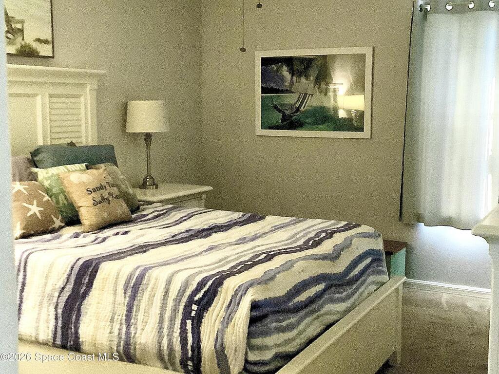 Welcome to Sunrise Landing featuring this lovely 3 bedroom, 2 bath, first floor, end unit. Relax on your very private screened in porch. Walk right outside for a perfect front row seat to rocket launches and dolphins playing in the Indian River. The kitchen features granite countertops with beautiful cabinetry and lots of storage. There is also a wet bar cabinet w/granite. Newer HVAC (2024). Residents at Sunrise Landing enjoy access to a range of amenities including 2 pools w/hot tubs, 2 saunas, 2 fishing piers, tennis/pickleball courts, shuffleboard, vehicle car wash area and more. HOA includes cable TV, internet, water, trash and ground maintenance. Located not far from beaches, Kennedy Space Center, Port Canaveral, shopping (Publix/Walgreens across the street), restaurants and a short 40 minute drive to Orlando International Airport. Great opportunity to live the enjoyable Space Coast life, perfect investment or snowbird retreat.