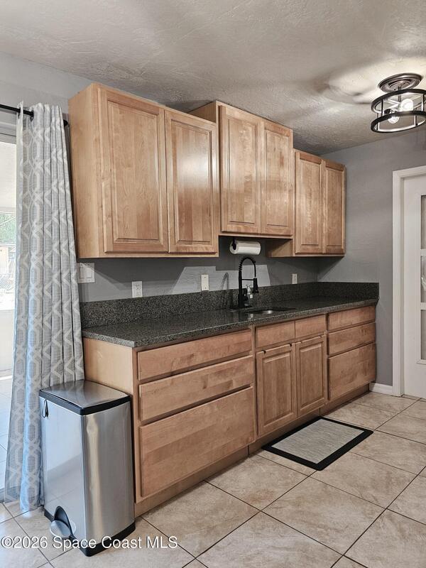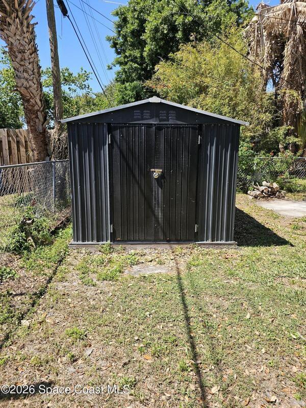 Well maintained home sits along street lined with shade trees. Beautiful kitchen has 42' cabinets, modern pull-out drawers & granite countertops. Tile floors throughout, no carpet. Both bathrooms include tile showers, newer vanities, fixtures & toilets. Modern additions include plantation shutters in living room & barn door in primary bedroom. Fenced backyard includes screened lanai & new shed for more storage. Roof 2021, A/C 2019, HWH 2018