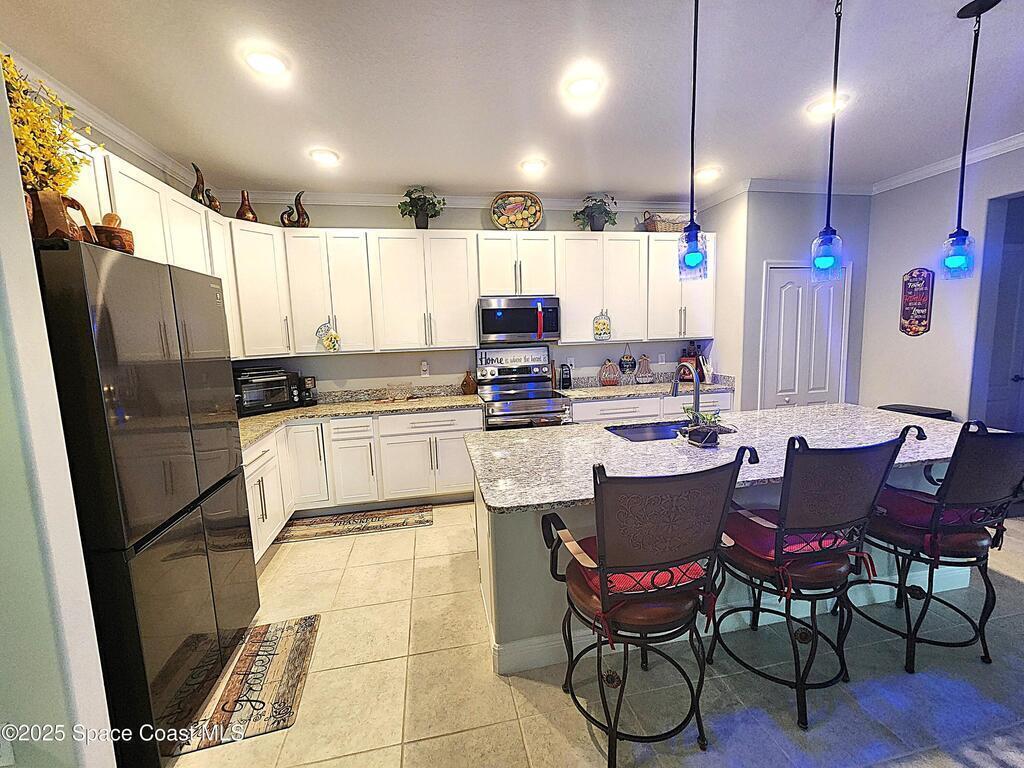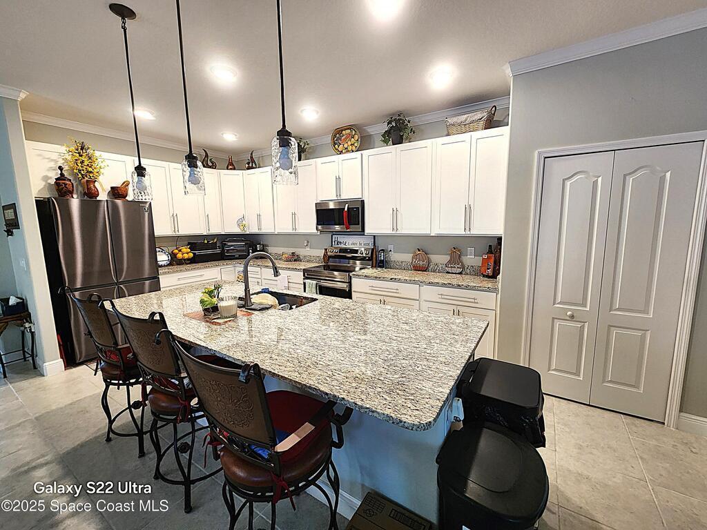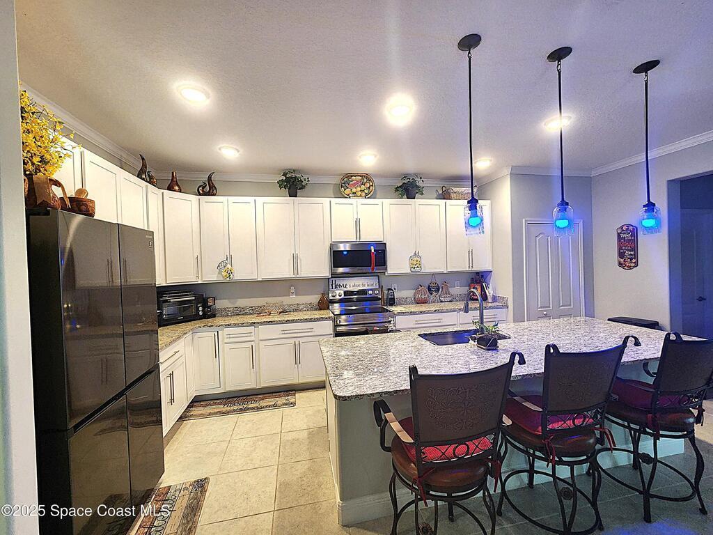 JUST REDUCED! ! This place has everything you want in a home. This meticulously maintained 4 bedroom & 3-bath Home is LOADED WITH UPGRADES. Its spacious open floor plan boasts the high ceiling, creating a bright and airy atmosphere throughout the home. The oversized master suite features a large walk-in closet, an attached bathroom with a stunning French door, offering a perfect space to unwind. The kitchen features 42 inches upgrade cabinets, and granite countertops_ There are even more captivating upgrades outside. A screened porch with a 360-degree water view is a pleasant spot for morning coffee. The brick paved back yard with covered sitting area is the perfect spot to an evening gathering under the stars. The all-around brick pavement adds elegance to the green landscape. Crown molding , coated garage floor, screened garage door, screened front porch, round corners, cabinets in the laundry room. Don't wait! MAKE THIS BEAUTIFUL HOME YOURS!