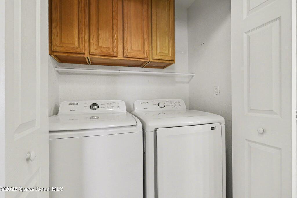 Unit comes with a GARAGE! Two story condo with 1 car garage. Primary bedroom located on first floor with walk in closet and double sinks in bathroom. Two bedrooms are found upstairs as well as the second bathroom and the washer & dryer area. Community pool and fitness center available. Monthly HOA fee includes water, trash, sewer and outdoor maintenance of complex. Roof 2019 Garage roof 2025, Hot water heater 2020, AC 12/2025