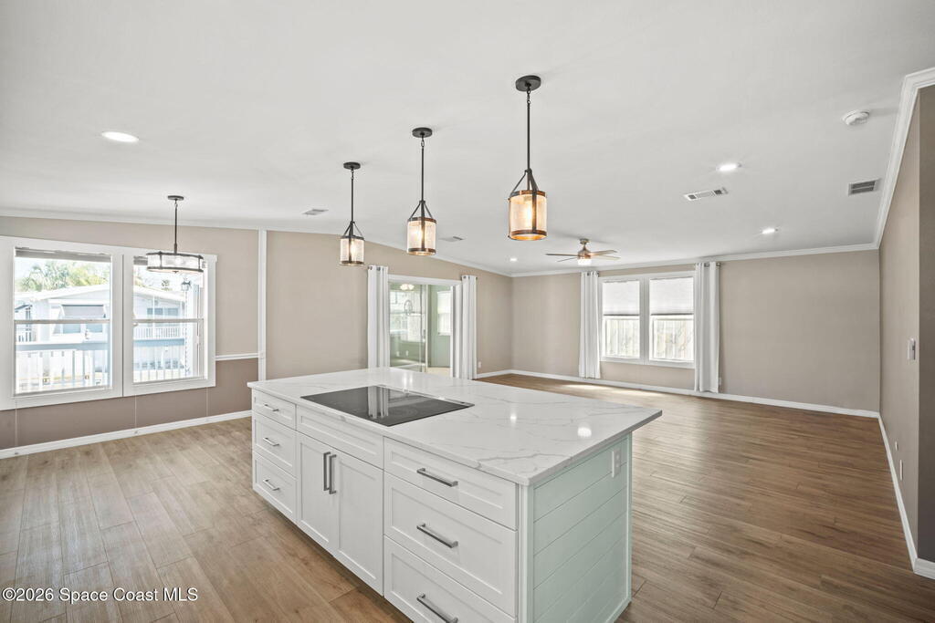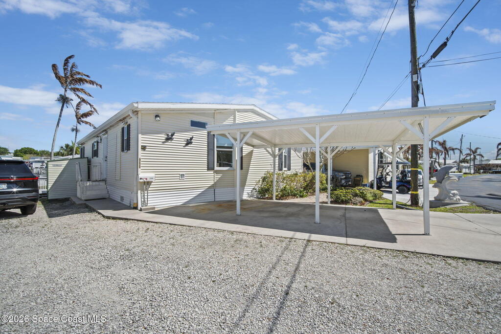 Fully remodeled 2 bed, 2 bath home in Palm Bay Estates with canal access and private boat lift to Turkey Creek and the Indian River. Stunning kitchen features quartz countertops, custom cabinetry, designer backsplash, and all new stainless steel appliances including an induction cooktop, built-in double wall oven with air fryer, and microwave. Bright, open layout with modern finishes throughout. Major updates include roof (2019), A/C and hot water heater (2021), and full remodel completed in 2022. Additional features include seamless gutters, Sunsetter retractable awning, spacious deck for outdoor living, and storage shed. Palm Bay Estates offers amenities including community pool, clubhouse, boat ramp, shuffleboard, and social activities. Ideal for boating or full-time Florida living.
