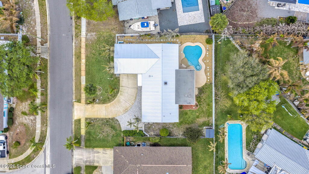 Welcome to effortless beachside living in this beautifully updated 3-bed, 2-bath home with a two-car garage, ideally located in the heart of Satellite Beach. Priced at $599k, this beachside pool home offers an incredible opportunity to own in Satellite Beach at a price point that's becoming increasingly hard to find. The backyard is your private oasis featuring a saltwater pool (2017) with a Baja shelf for lounging and an in-water table--perfect for soaking up sunny Florida afternoons. The open-concept kitchen has been tastefully updated and features a convenient pass-through window to the oversized screened lanai. The spacious, fully fenced backyard is beautifully landscaped and includes a storage shed, offering both privacy and functionality. Peace of mind with durable 2018 metal roof and NEW A/C! Quiet neighborhood just a short walk, bike or golf cart ride to the beach, local restaurants, and vibrant hotspots. Call/text today to begin living the laid-back Satellite Beach lifestyle!